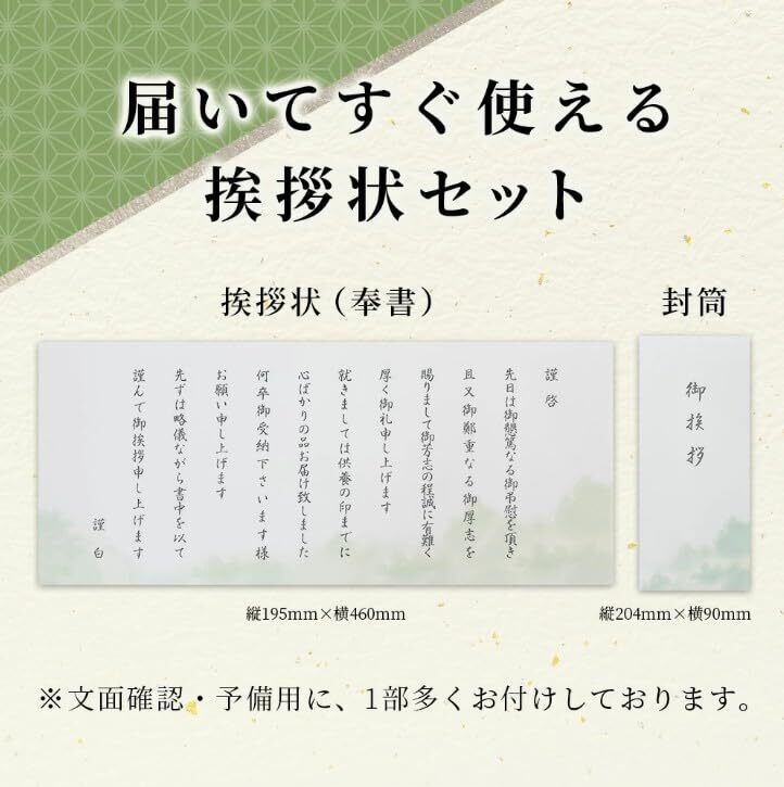 【内容】香典返し用 挨拶状 奉書 ・サイズ 封筒:縦204mm×横90mm 奉書:縦195mm×横460mm