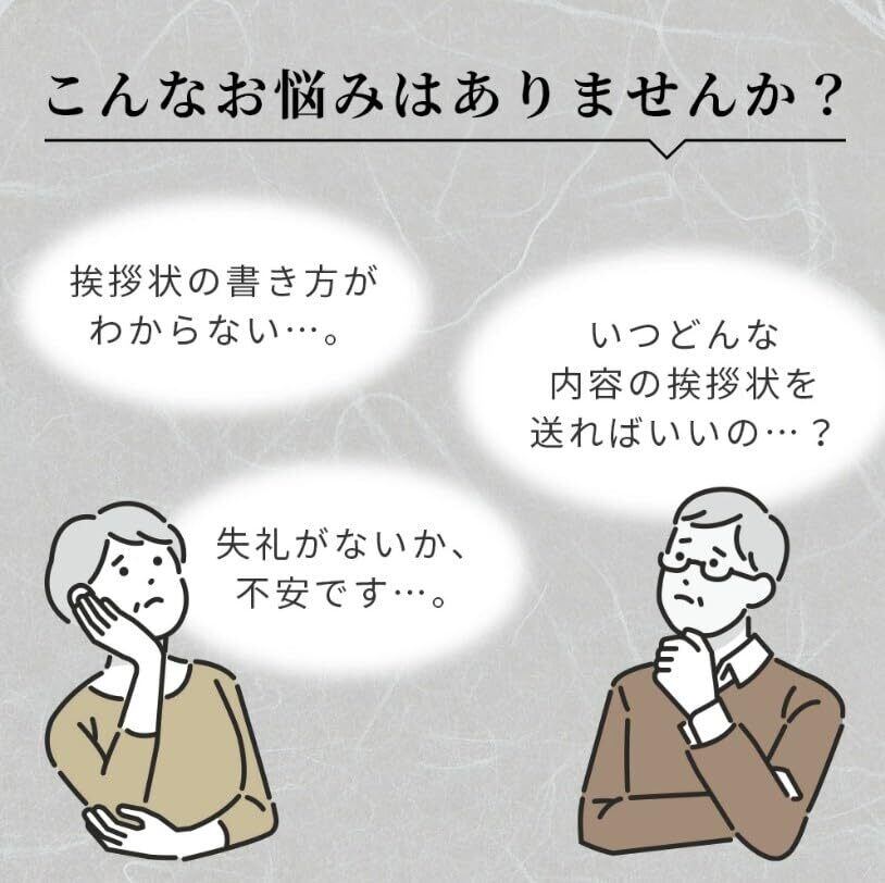 【こんな時におすすめ】あと数枚ほしい、挨拶状だけほしい、そんな時におすすめです。印刷済みの挨拶状なので手書きの必要がありません。印刷屋さんに頼むと日数がかかってしまうし、数枚では頼めない、そんな時の困ったを解決します。