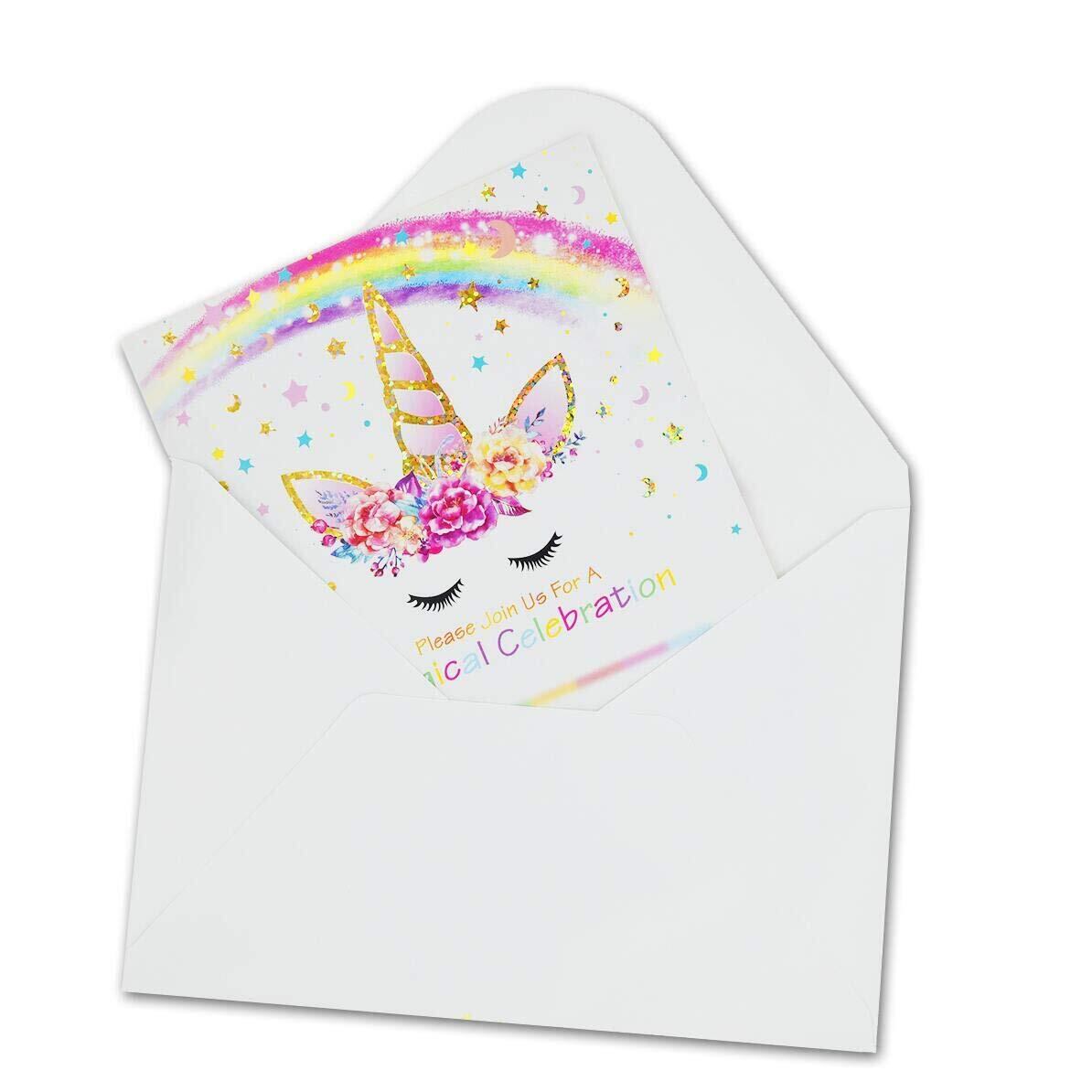 T-Antrix ユニコーン招待状 封筒24枚付き 両面レインボーグリッター ユニコーン 誕生日パーティー招待状カード 子供の誕生日 ベビーシャワー ユニコーン パーティー用品 24枚