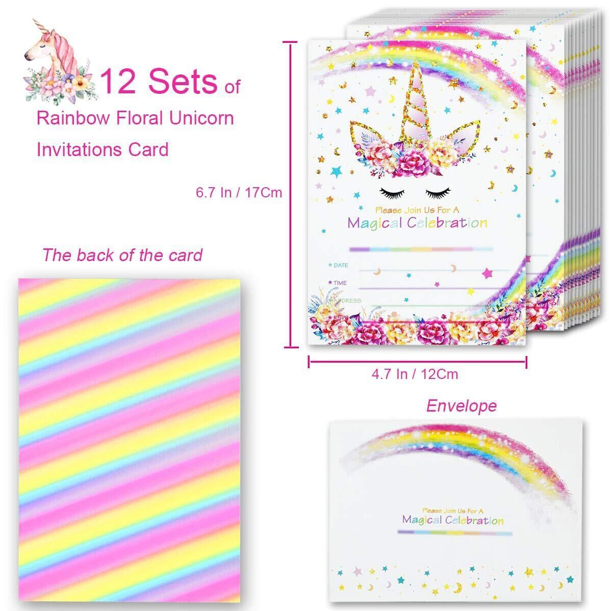 お買い得 - 2つのユニークなデザイン、キラキラ星とレインボーフローラルユニコーン。 特別な日にお祝いしてゲストをワクワクさせます!
