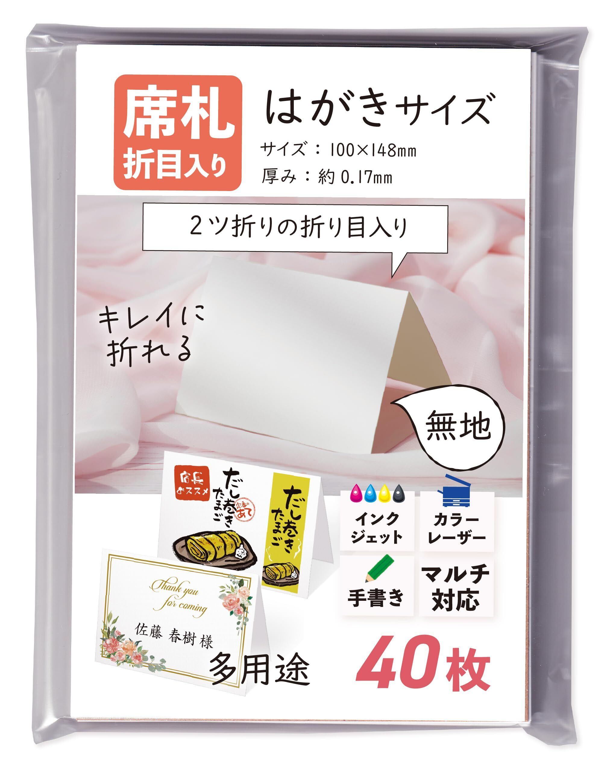 席札 はがき サイズ 40枚 用紙 結婚式 折り目入り スジ入れ 結婚式 2つ折り 無地