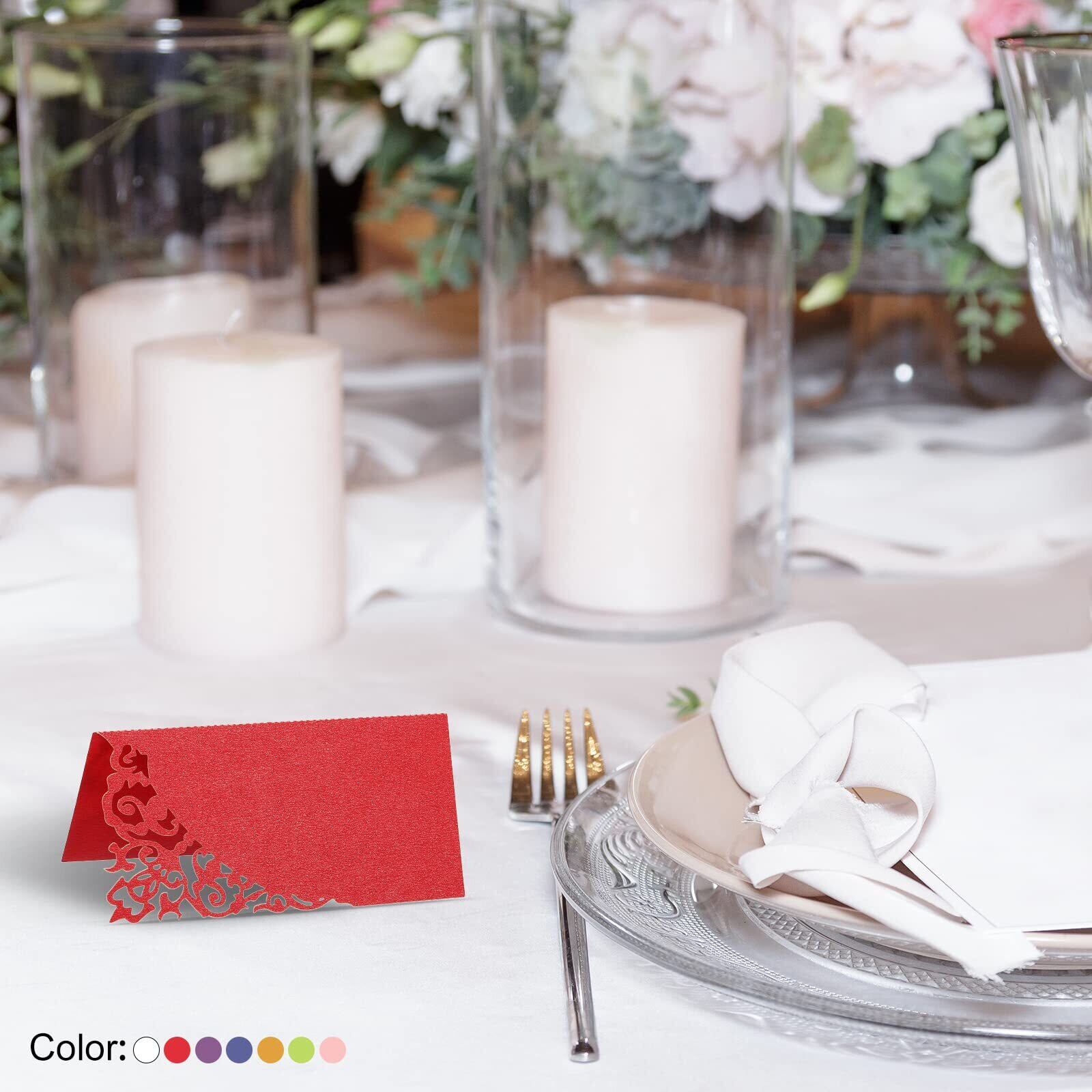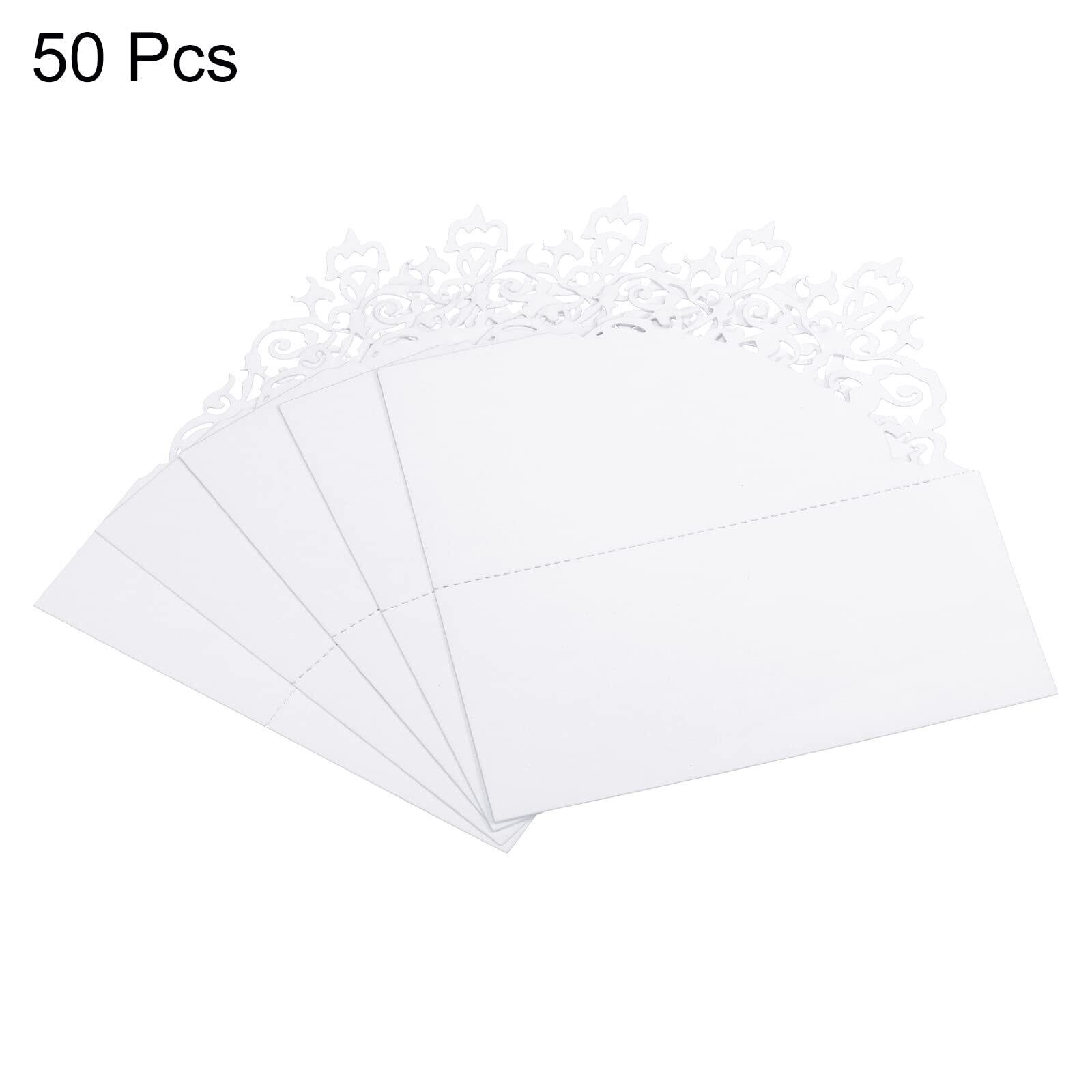 【新春セール】PATIKIL テーブル名プレイスカード 50個 好意の装飾 中空デザイン 座席ブランクカード 結婚披露宴用 座席指定カード ホワイト