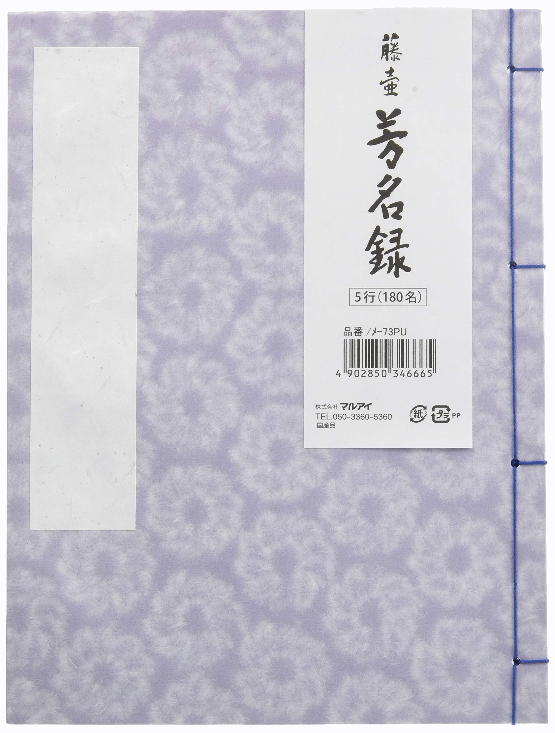 【2022最新】マルアイ(Maruai) 芳名帳 ゲストブック 藤壺芳名録 縦書き 5行180名分 紫 メ-73PU