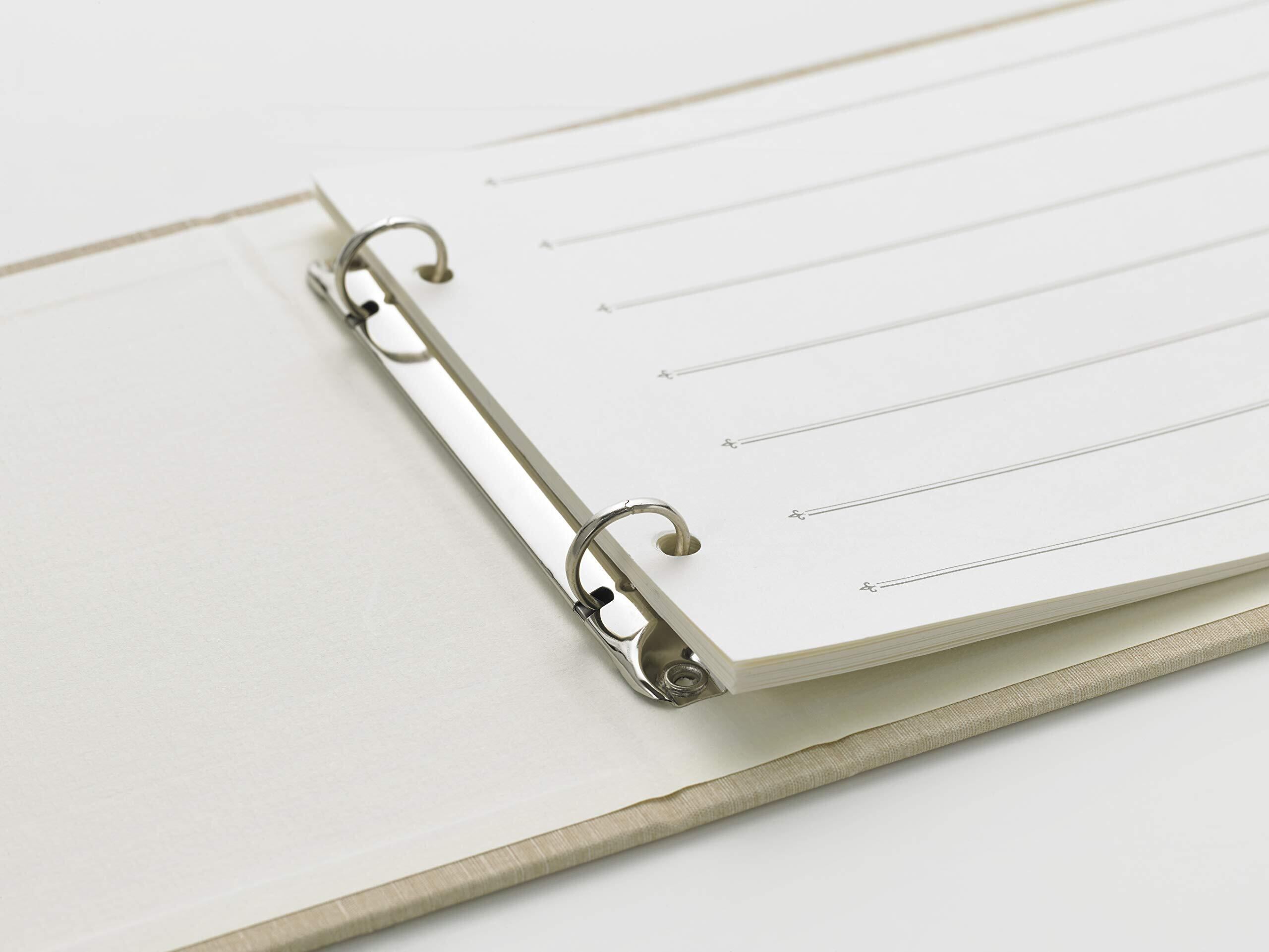 シンプルなバインダー式のゲストブックです。結婚式に限らず、各種パーティーや発表会、展示会などにも幅広くご利用いただけます。リフィル15枚付(6行×15枚 90名用) 別売り 追加サイン用紙(リフィル)もございます