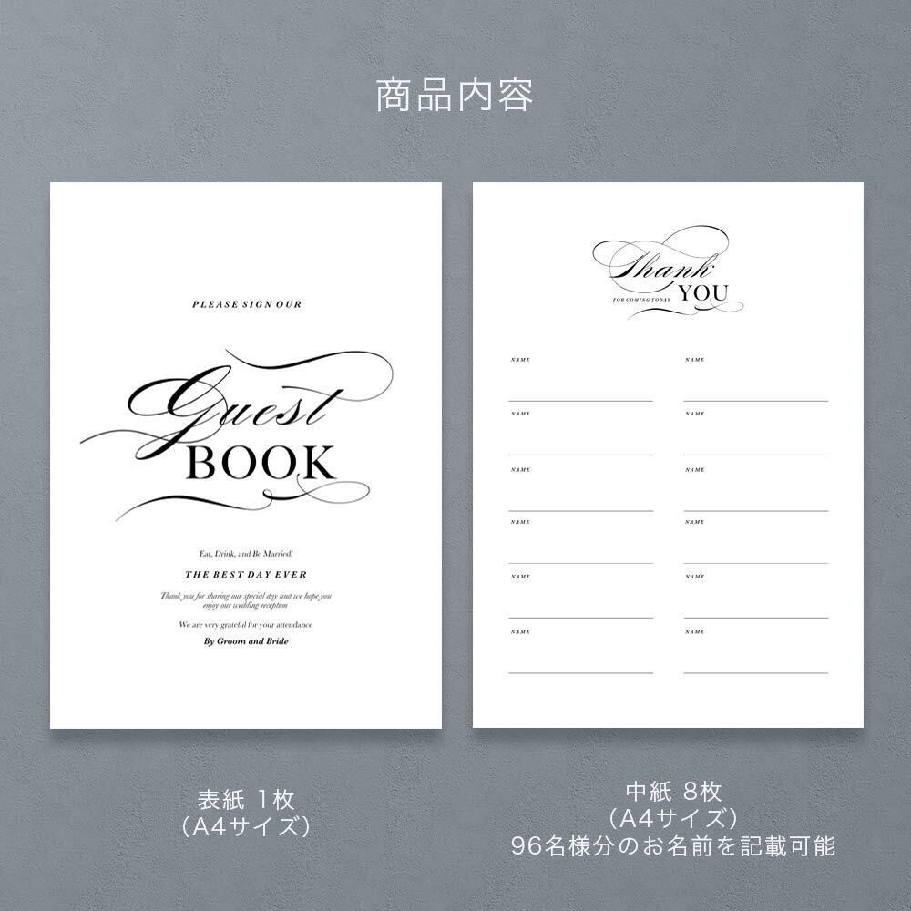 ゲストブック 芳名帳 結婚式 ウェディング ゲストカード ウェルカムボード 受付サイン カリグラフィー 96名分 (表紙1枚+中紙8枚)