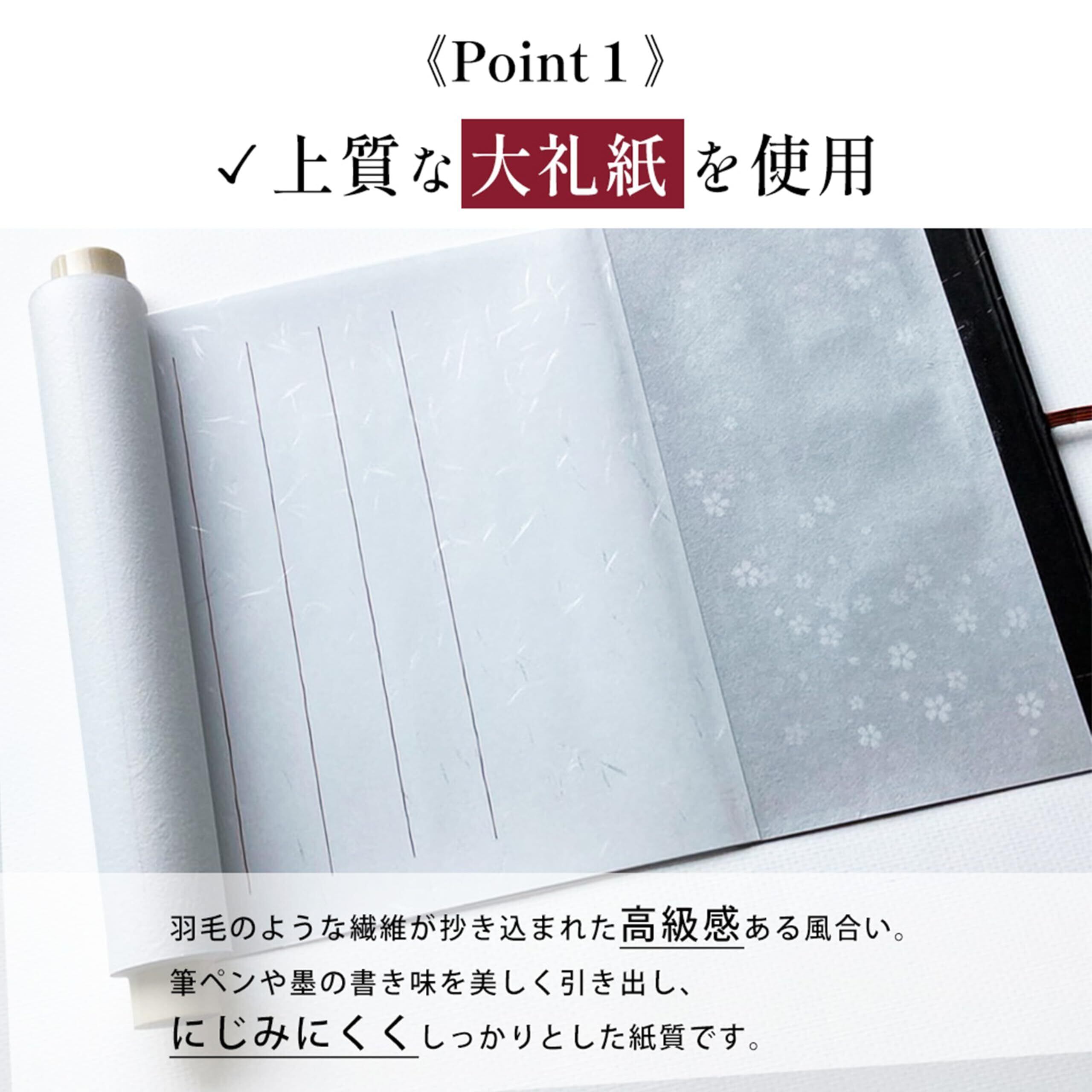 この巻物帳は、特に芳名録やゲストブックとしての使用に最適です。結婚式や葬儀といった特別なイベントで、参加者が感想や祝福の言葉を記入するために使用されます。その記録は後に主催者や家族にとって貴重な思い出となり、大切に保存されることでしょう。 葬儀や法事などで使用される場合、参列者が故人やその家族に対する思いや励ましの言葉を記入します。このようなシーンでは、縦書きの芳名録が伝統的な雰囲気を演出し、心温まるメッセージがより深い意味を持つことがあります。一方、結婚式でゲストブックとして使用される場合、新郎新婦や参列者が祝福のメッセージや感謝の言葉を記入します。これにより、結婚式の思い出が一冊の巻物帳に美しく収められ、後に新しい夫婦の家に飾られることが多いです。