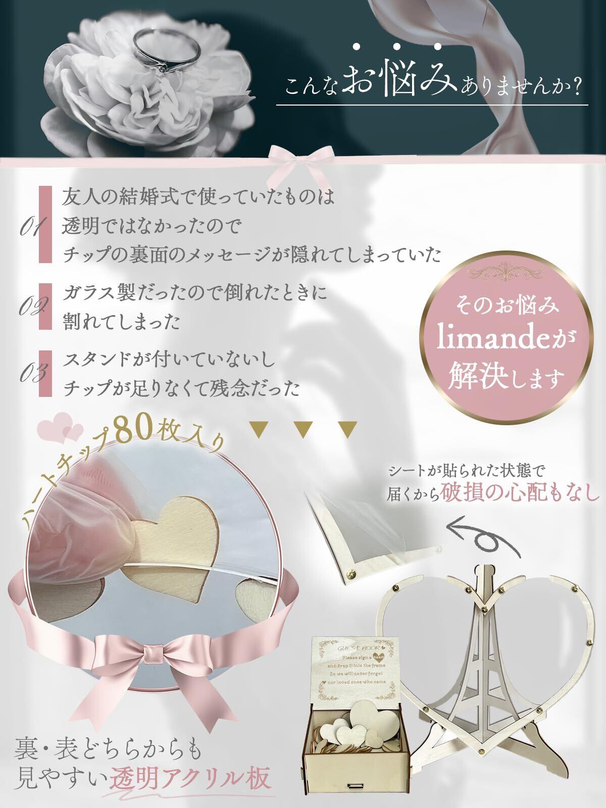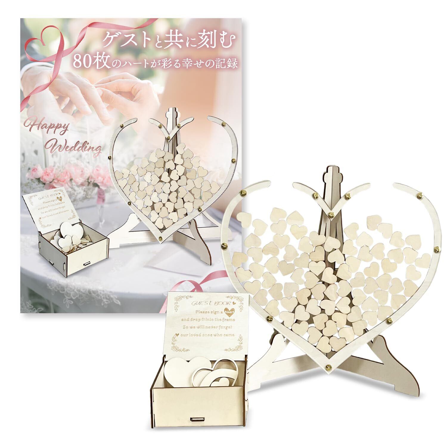 ウェディングドロップス ハート型ドロップス 80枚収納 人前式 ウェルカムボード 結婚証明書 豪華演出