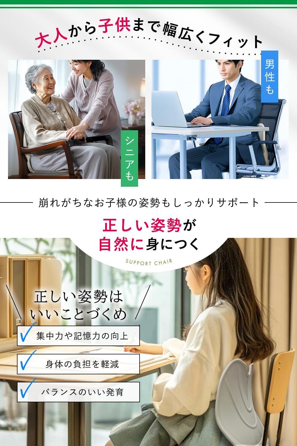【大人から子供まで幅広くフィット】男女問わずお使いいだだけるデザイン。お子様の姿勢もしっかりサポートし、正しい姿勢が自然に身につきます。