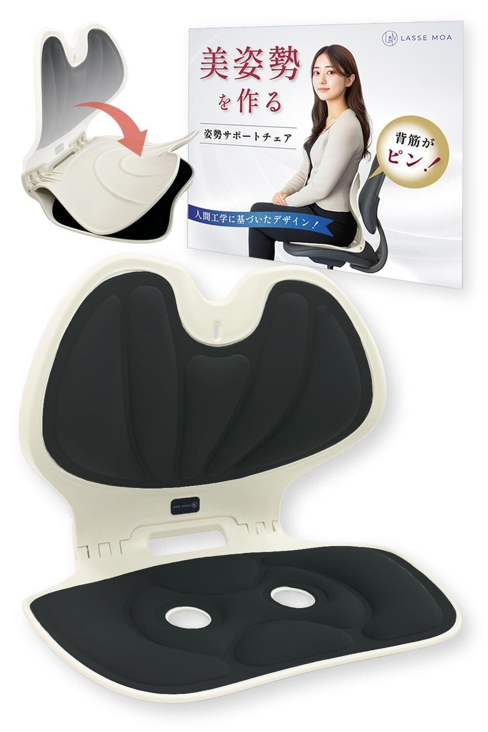 姿勢サポートチェア 折りたたみ式 日本ブランド 姿勢矯正 骨盤矯正 クッション 椅子 姿勢改善 腰痛改善 LASSE MOA (ブラック)