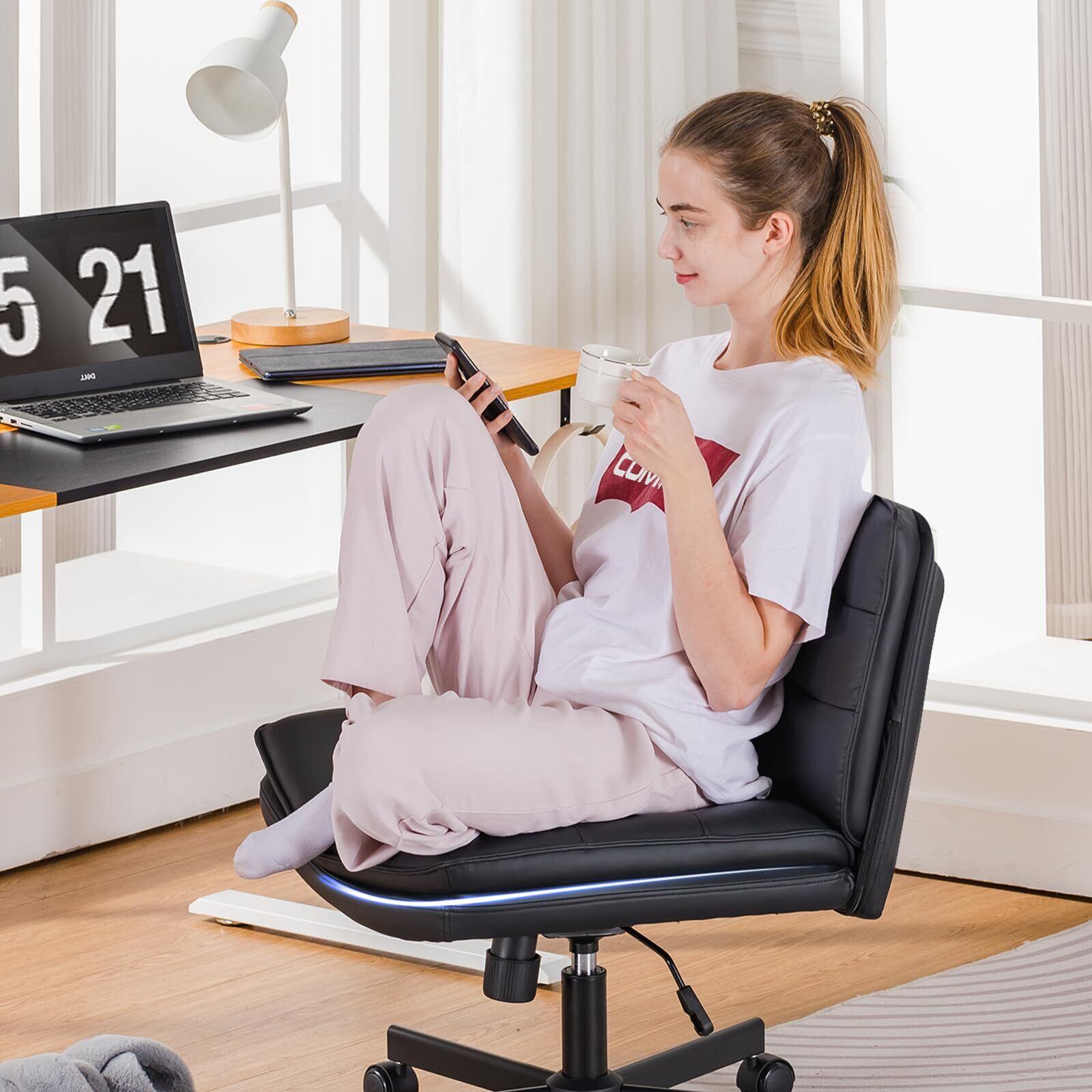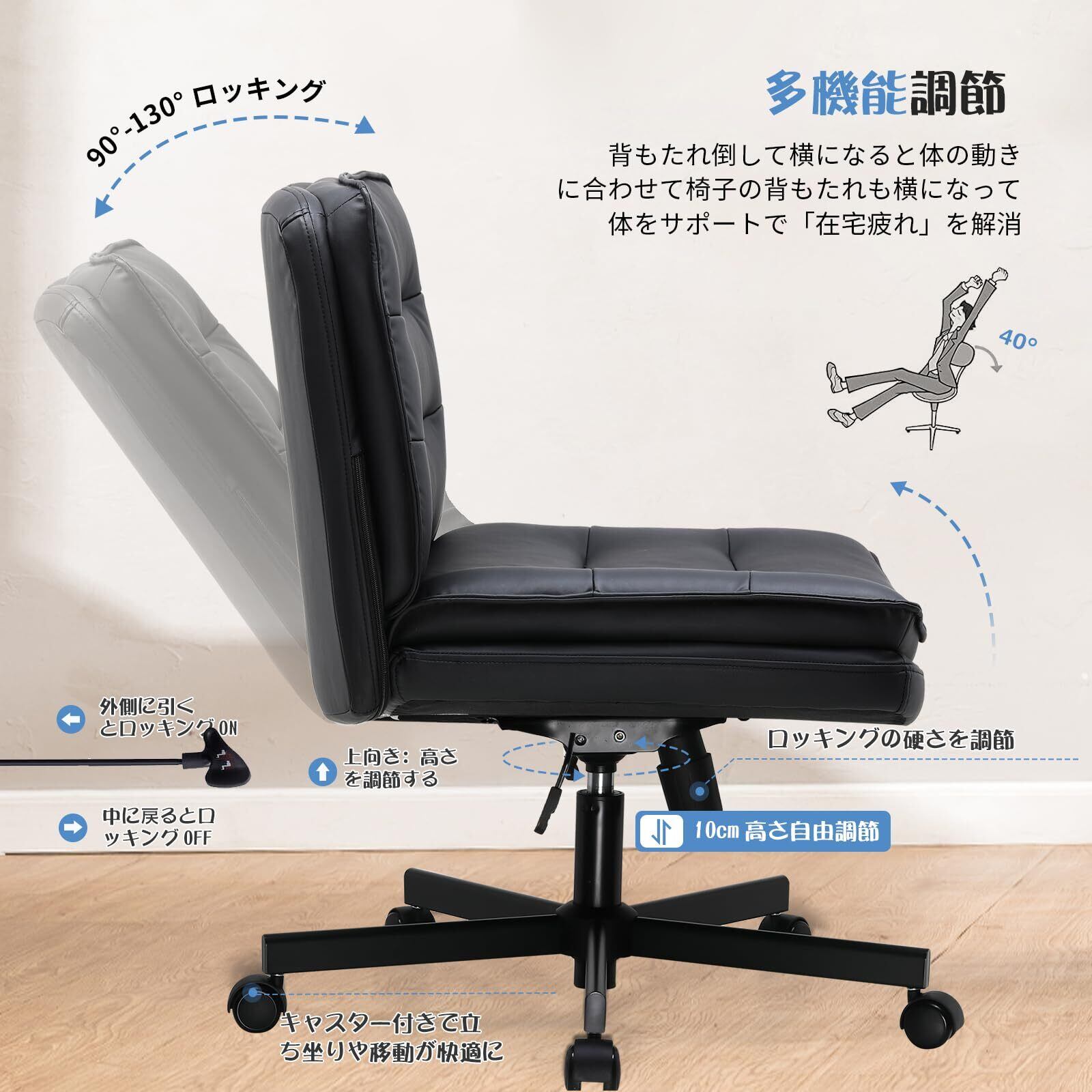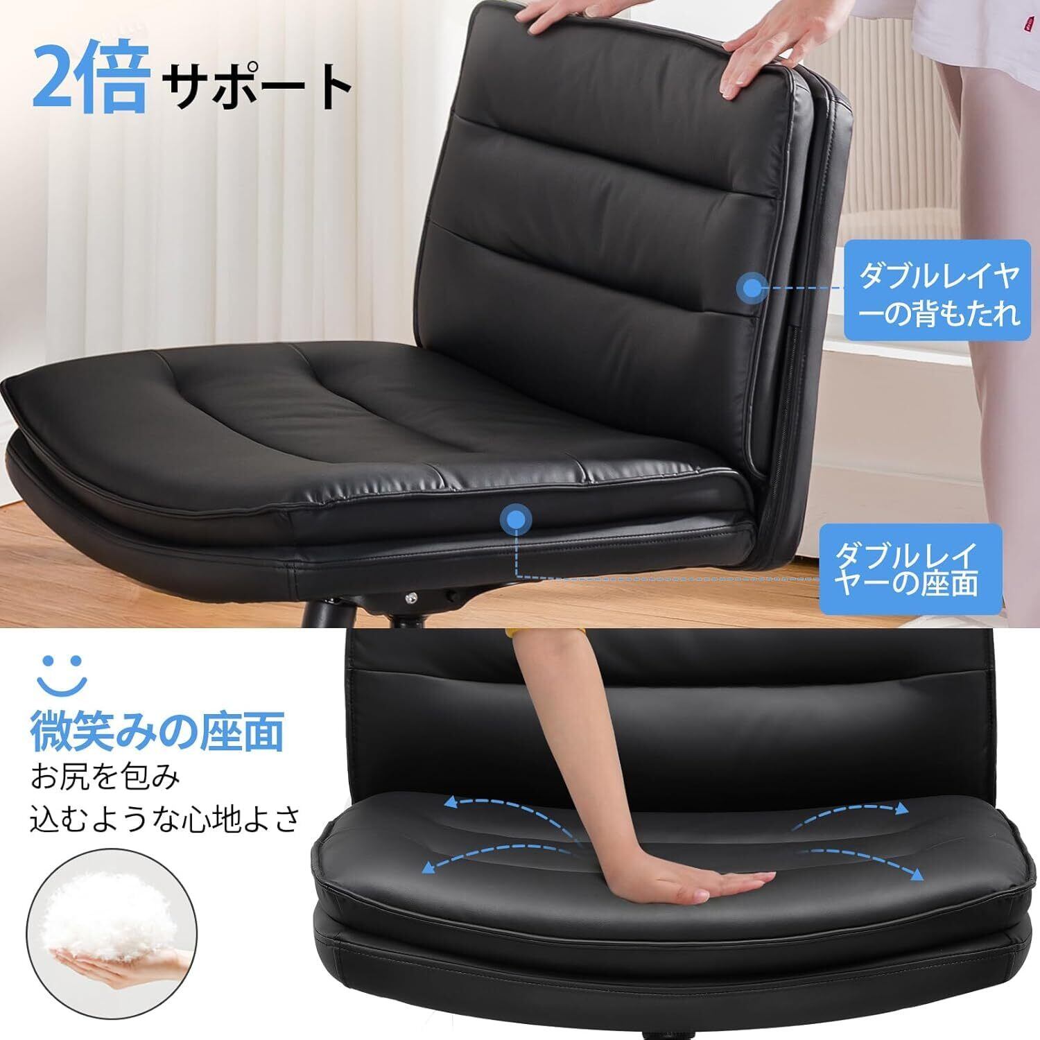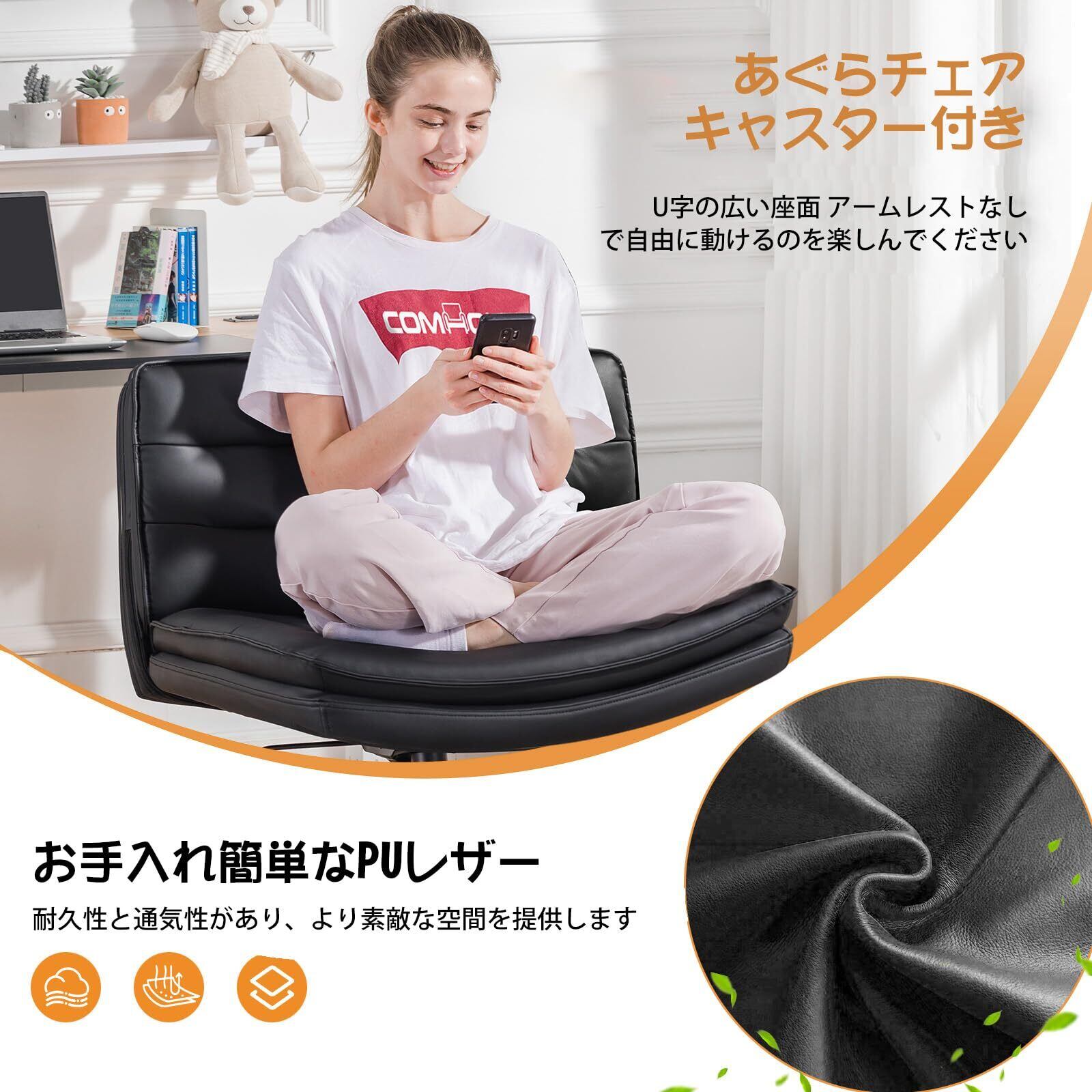 【新春セール】COMHOMA デスクチェア あぐら ソファチェア オフィスチェア ブラック 疲れない椅子 90°~130°ロッキング角度 肘掛けなし 座面広い ホイール付き回転 10cm高さ調節可能 PUレザー 軽快な小型のソファ 一人掛け 小さなスペース (PUレザー, Black-1)