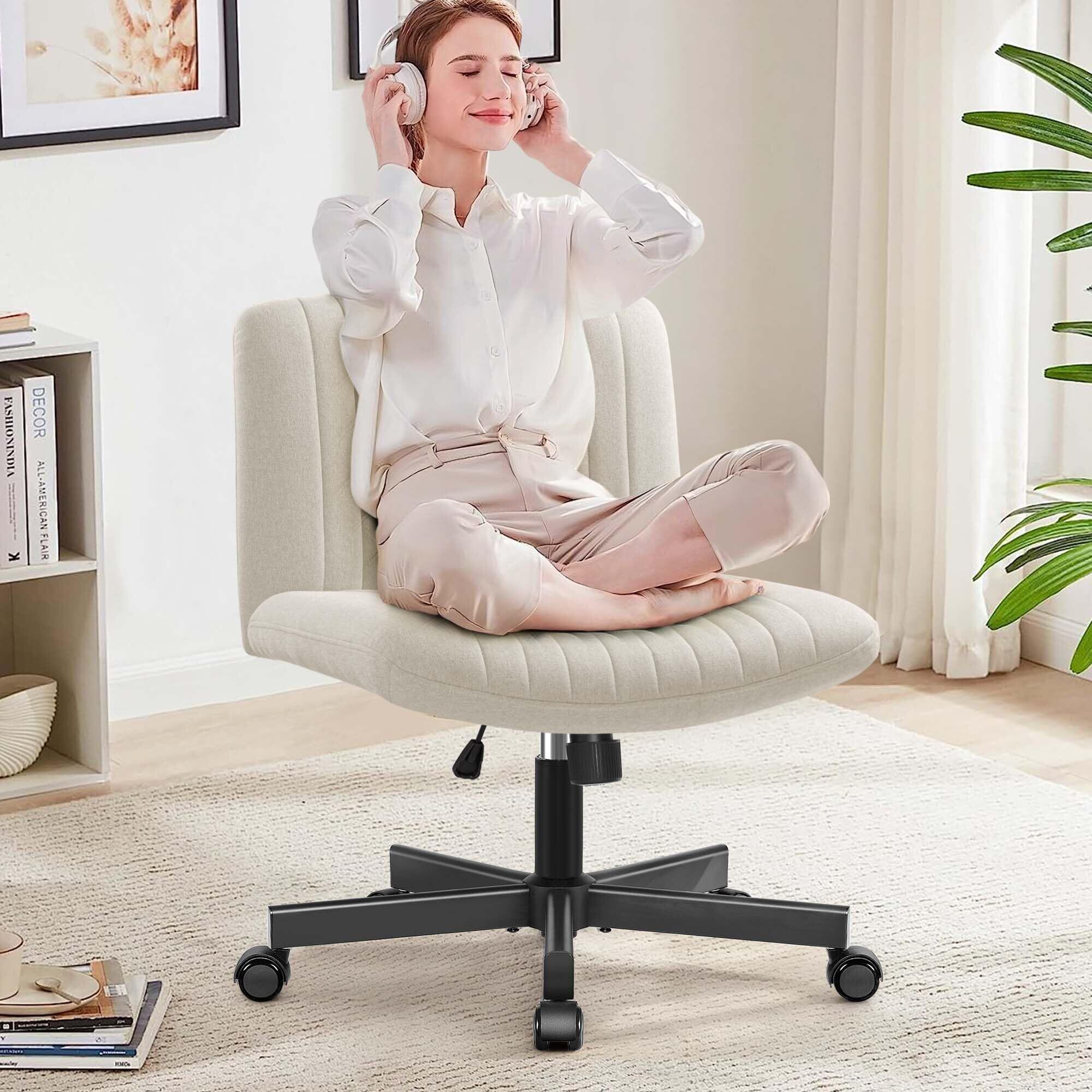 【特価セール】FelixKing デスクチェア あぐら 椅子 オフィスチェア 肉厚座面 布張り ソファチェア 肘掛けなし 疲れない 座面広い ホイール付き回転 10cm高さ調節可能 回転軽快な小型のソファ 一人掛け 小さなスペース 90°~120°ロッキング角度 キャスター付き パソコン 事務 学習 勉強 在宅 ワーク おしゃれ ベージュ