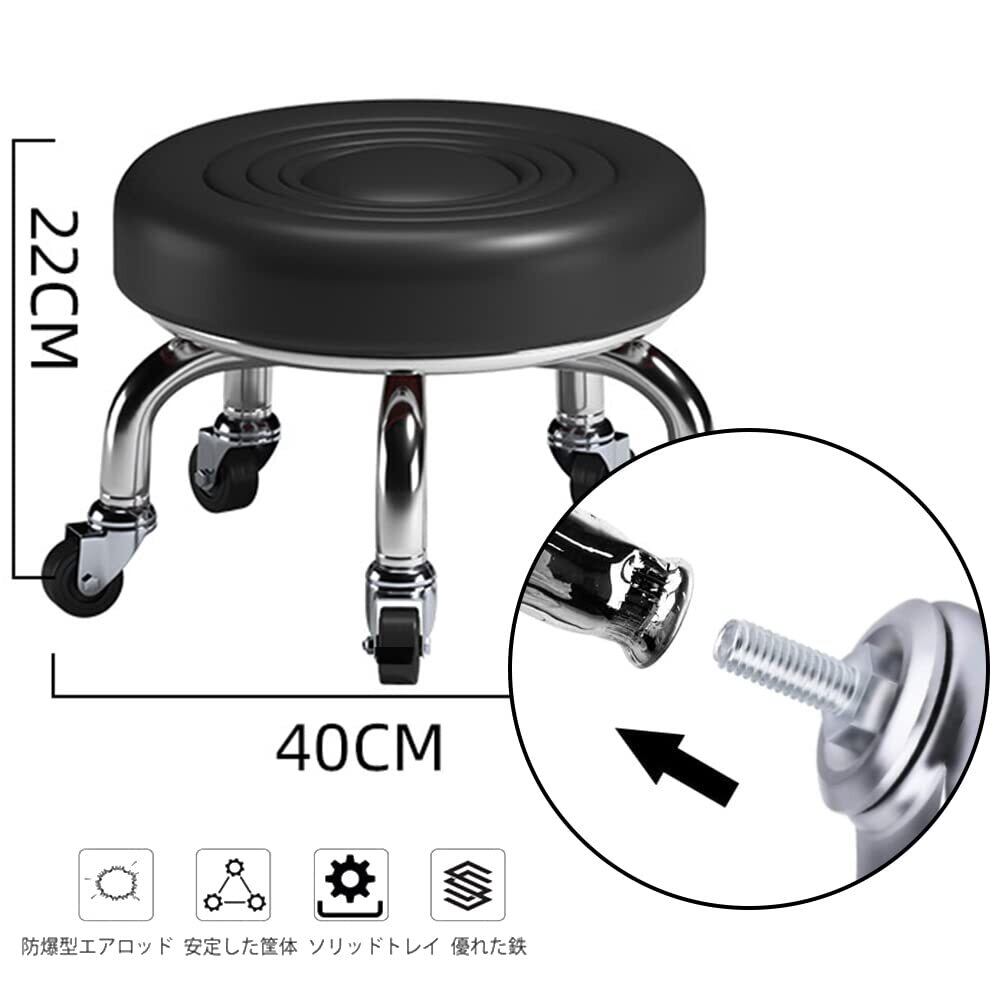 ロースツール リビングルームスツール キャスター付き 丸椅子 低床椅子 自動車整備 低所作業 360°スイベル低い 高さ:22cm(黒)