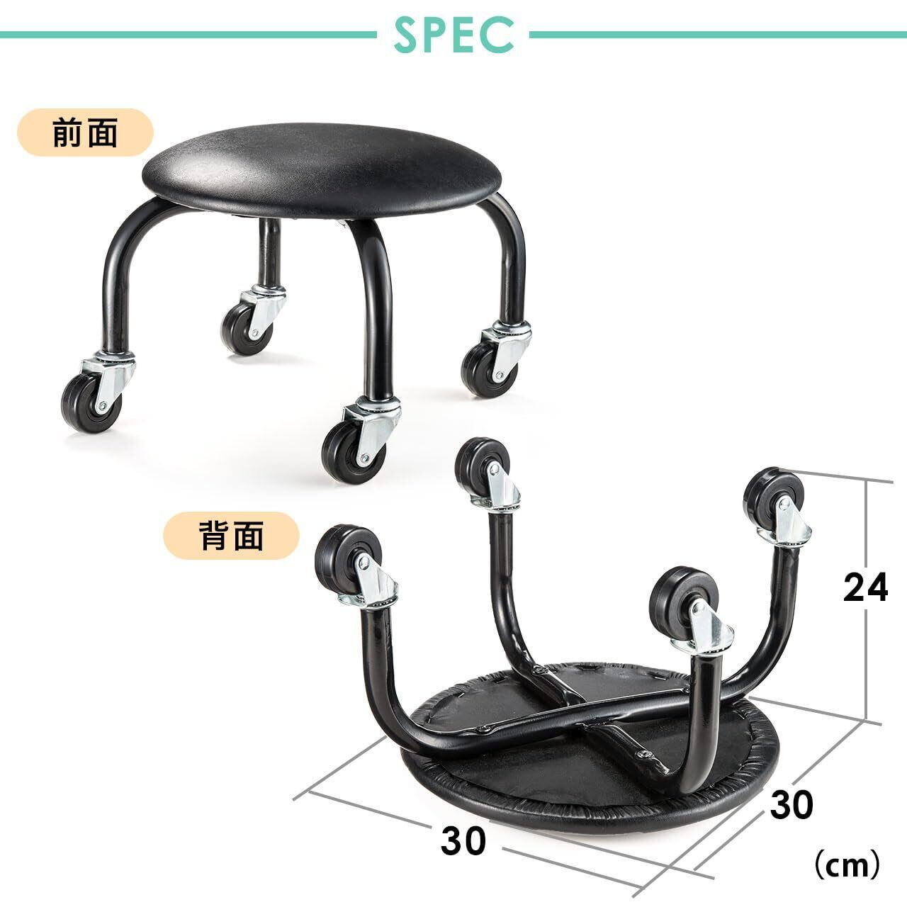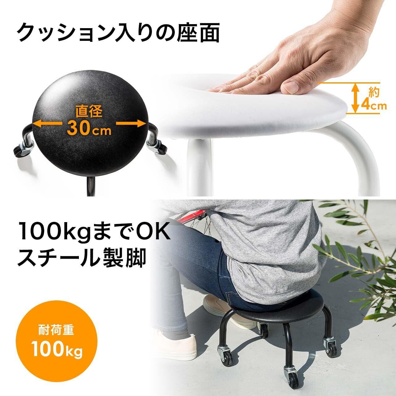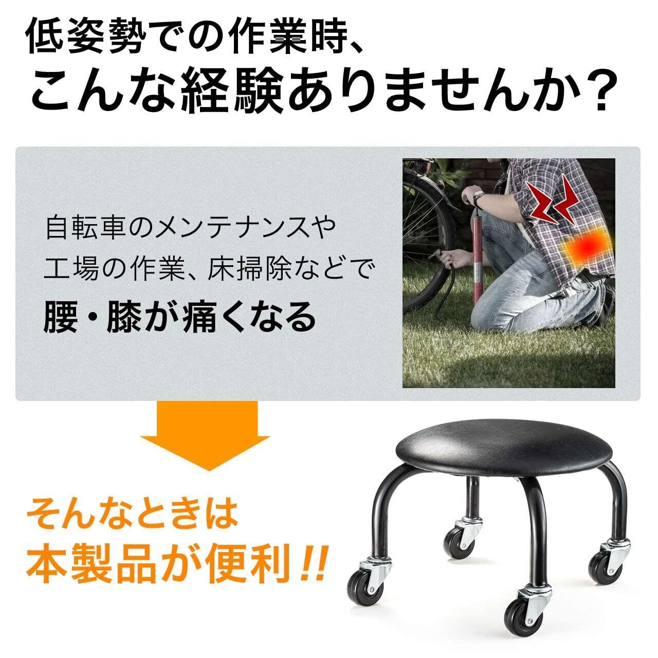 【新着商品】サンワダイレクト 作業椅子 キャスター付き 低い 耐荷重100kg 低作業椅子 ブラック 150-SNCH011BK