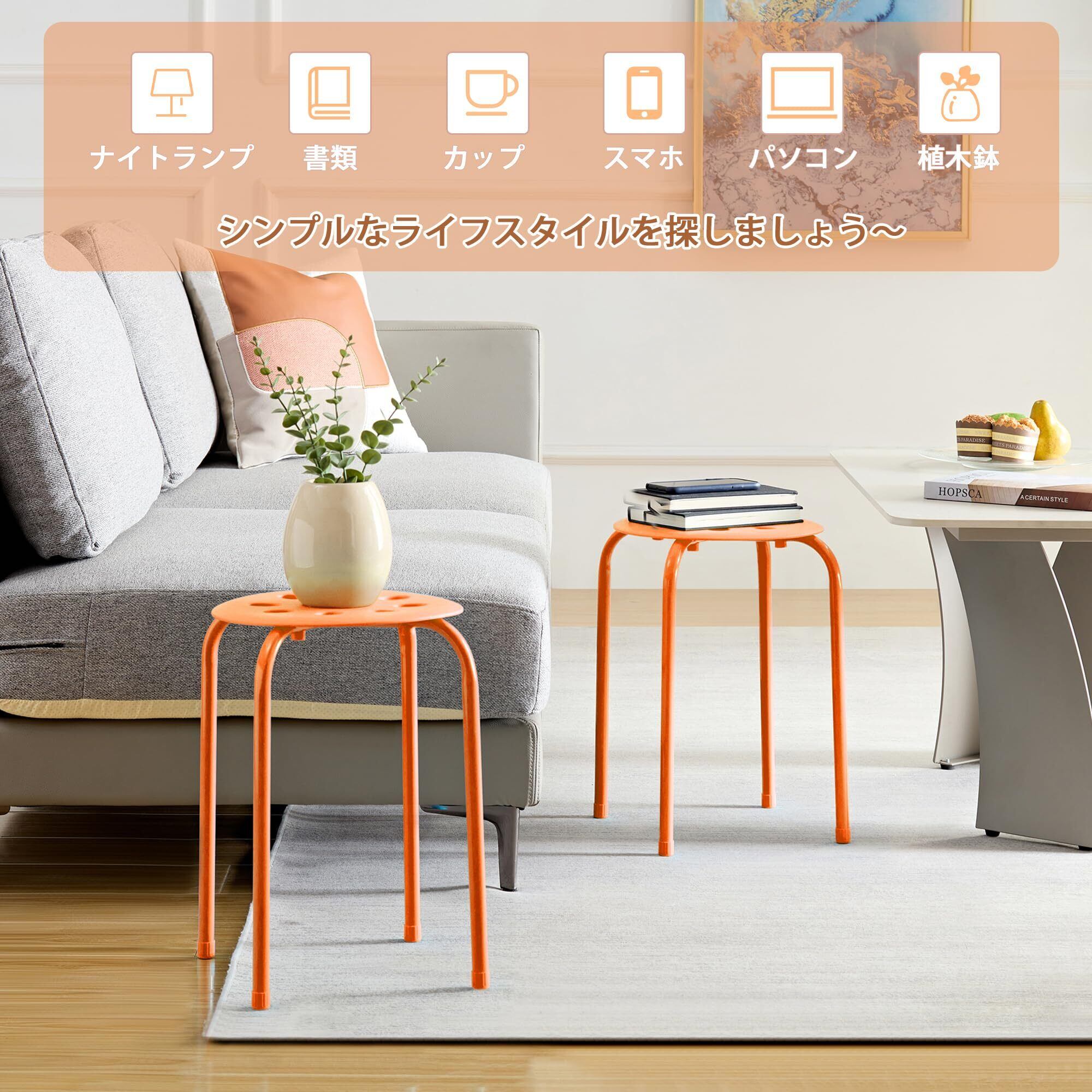 VECELO 丸イス パイプ椅子 6脚セット 幅30X奥行30X高さ45cm スタッキング シンプル 軽量 携帯便利 積み重ね スツール 頑丈 通気 腰掛け 完成品 防水 食卓椅子 オフィススツール ダイニングチェア オレンジ