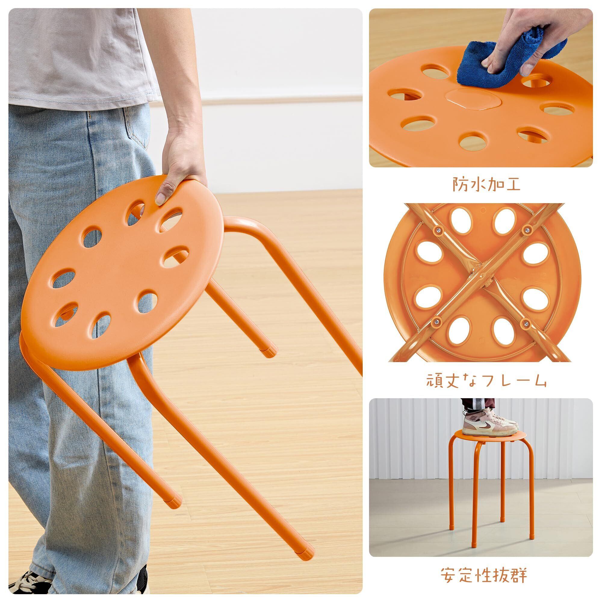 【在庫セール】VECELO 丸イス パイプ椅子 6脚セット 幅30X奥行30X高さ45cm スタッキング シンプル 軽量 携帯便利 積み重ね スツール 頑丈 通気 腰掛け 完成品 防水 食卓椅子 オフィススツール ダイニングチェア オレンジ
