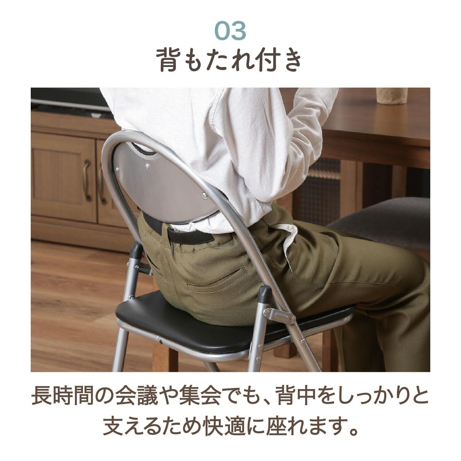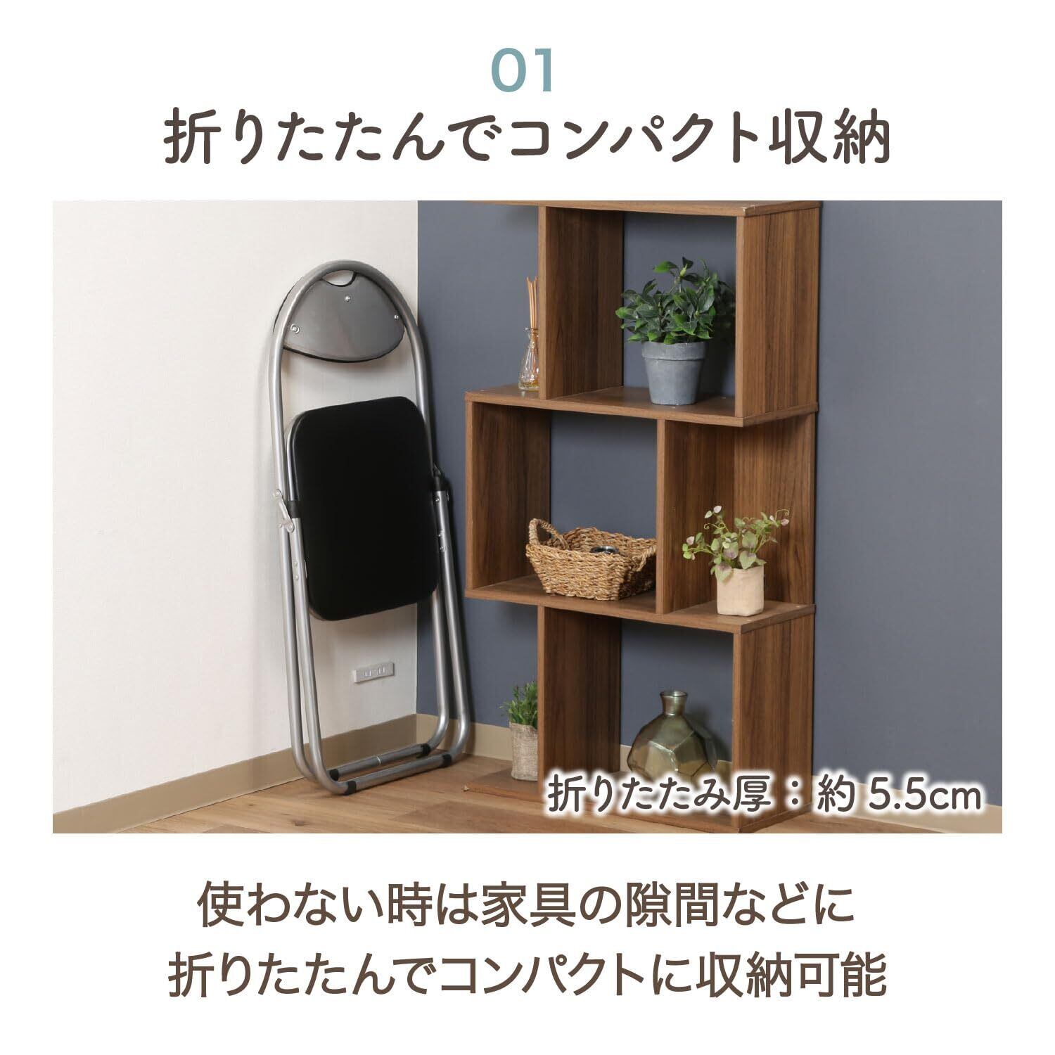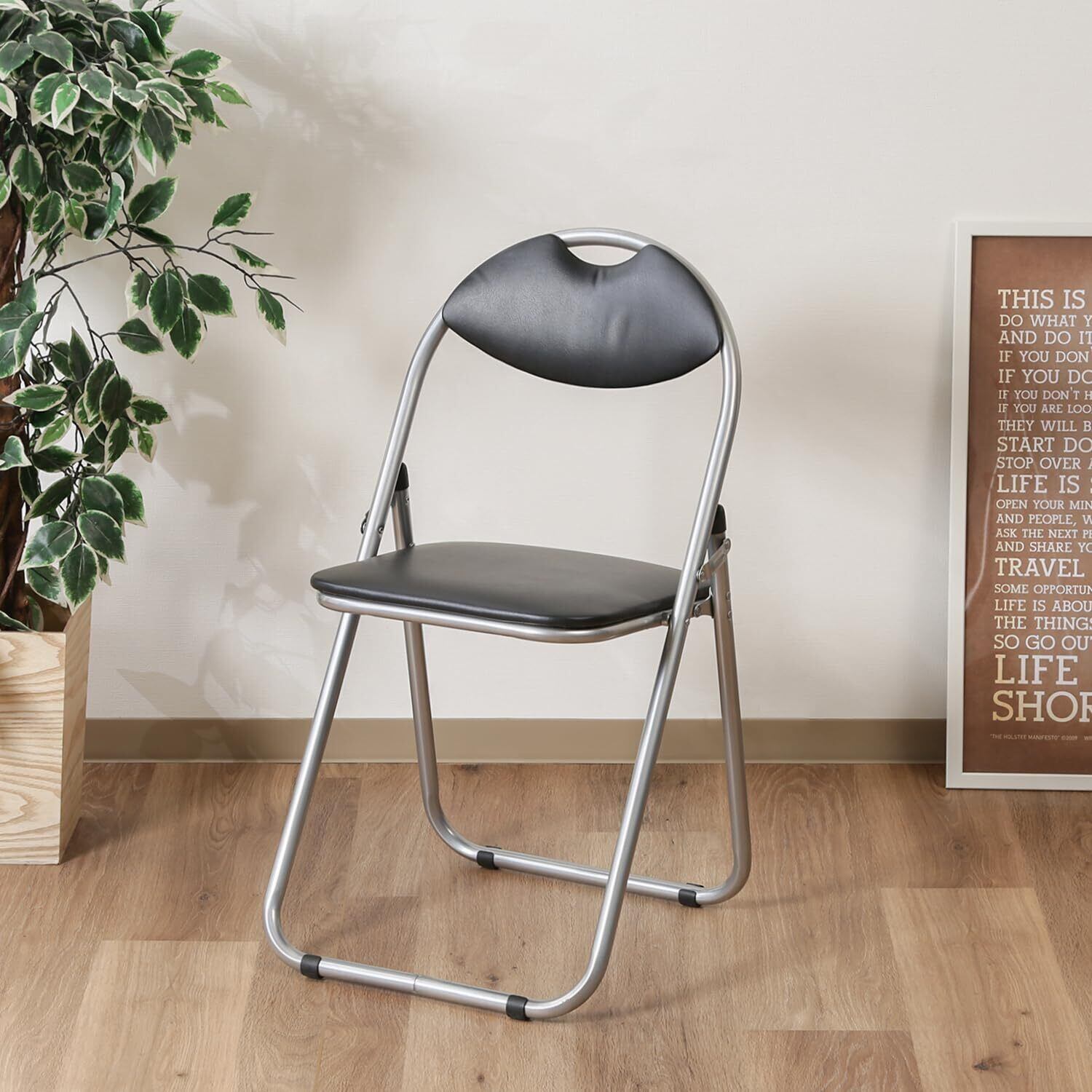 不二貿易 折りたたみ パイプチェア 幅45cm ブラック 合皮 88626
