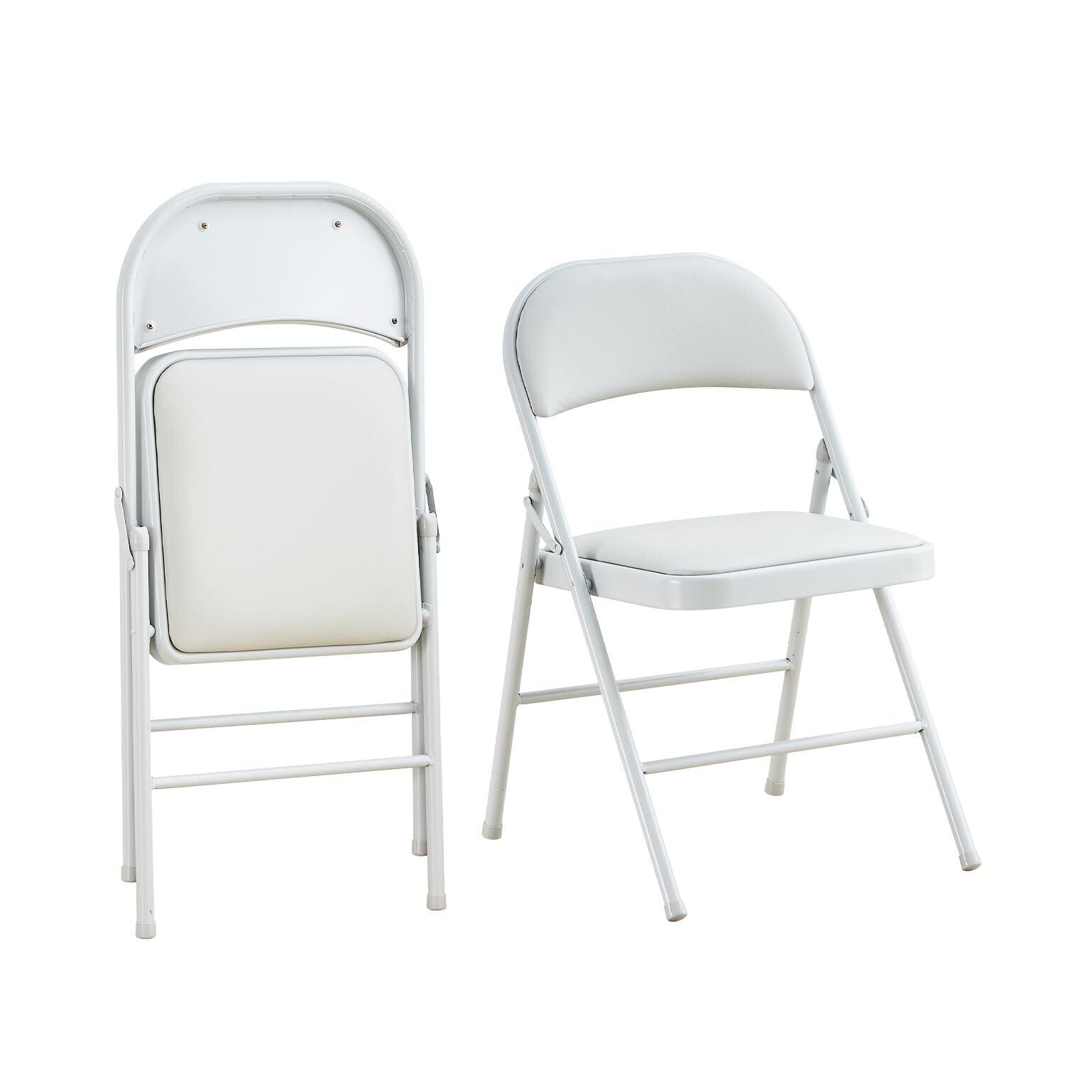 KAIHAOWIN パイプ椅子 折りたたみ椅子 リビングチェア PU素材 背もたれ 省スペース 組立不要 安定性 耐久性 会議 イベント ダイニング ホワイト (2脚セット)