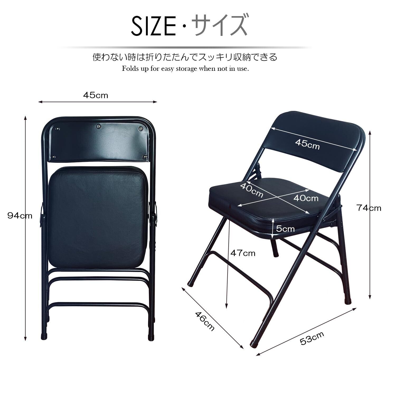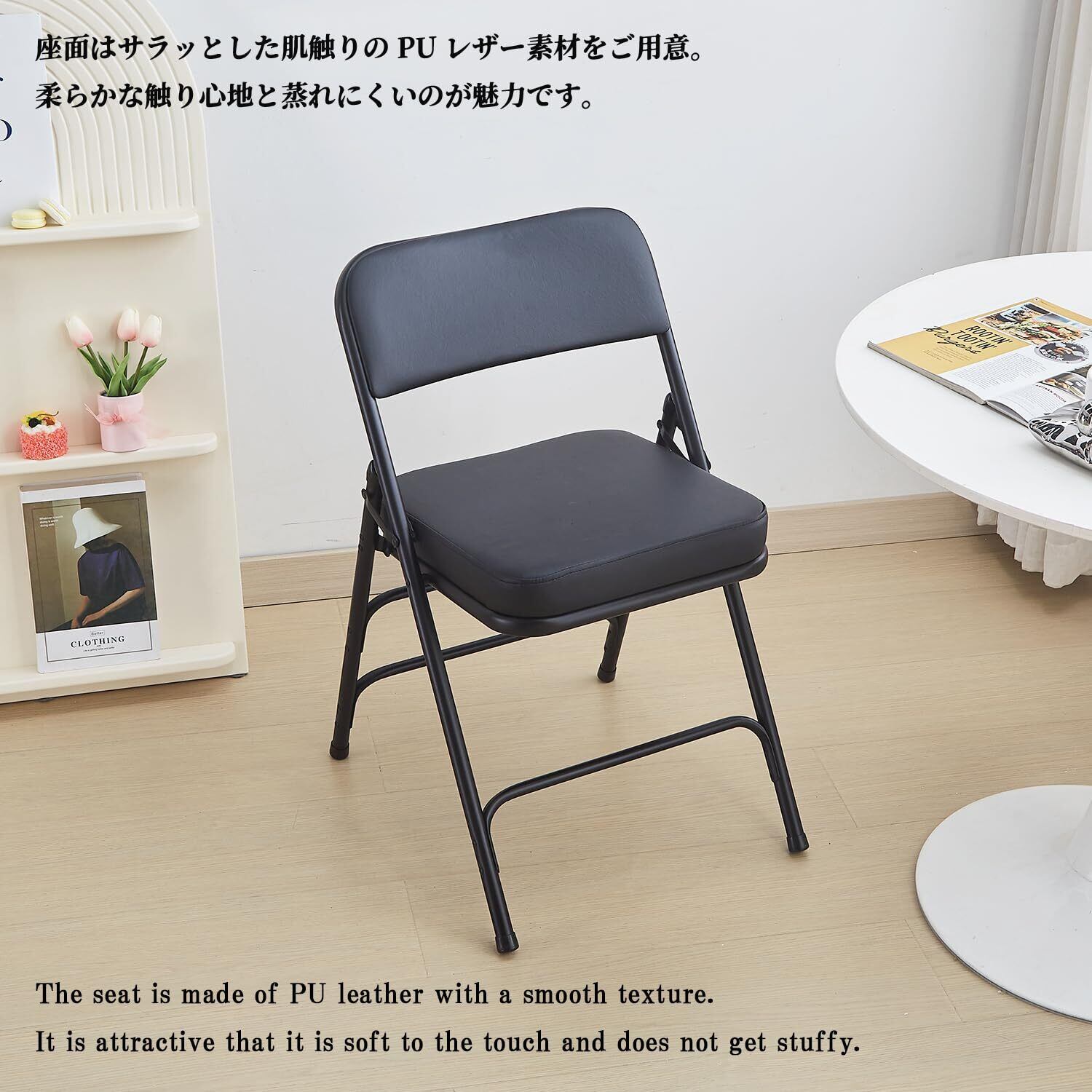 【特価セール】KAIHAOWIN パイプ椅子 折りたたみ椅子 ミーティングチェア 1脚 会議椅子 背もたれ 折り畳み イス ダイニングチェア 分厚いクッション いす 折りたたみチェア 金属製 省スペース イベント シンプル ブラック 45x53x74cm