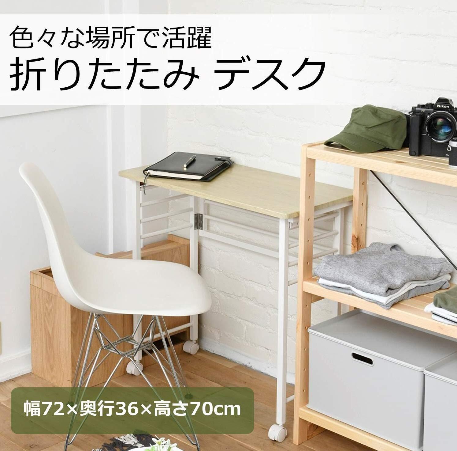 山善(YAMAZEN) 折りたたみ デスク (ミニ) 幅72×奥行36×高さ70cm コンパクト キャスター付き 傷がつきにくい 完成品 ナチュラルメイプル/アイボリー PSTC-7236(NM/IV 在宅勤務