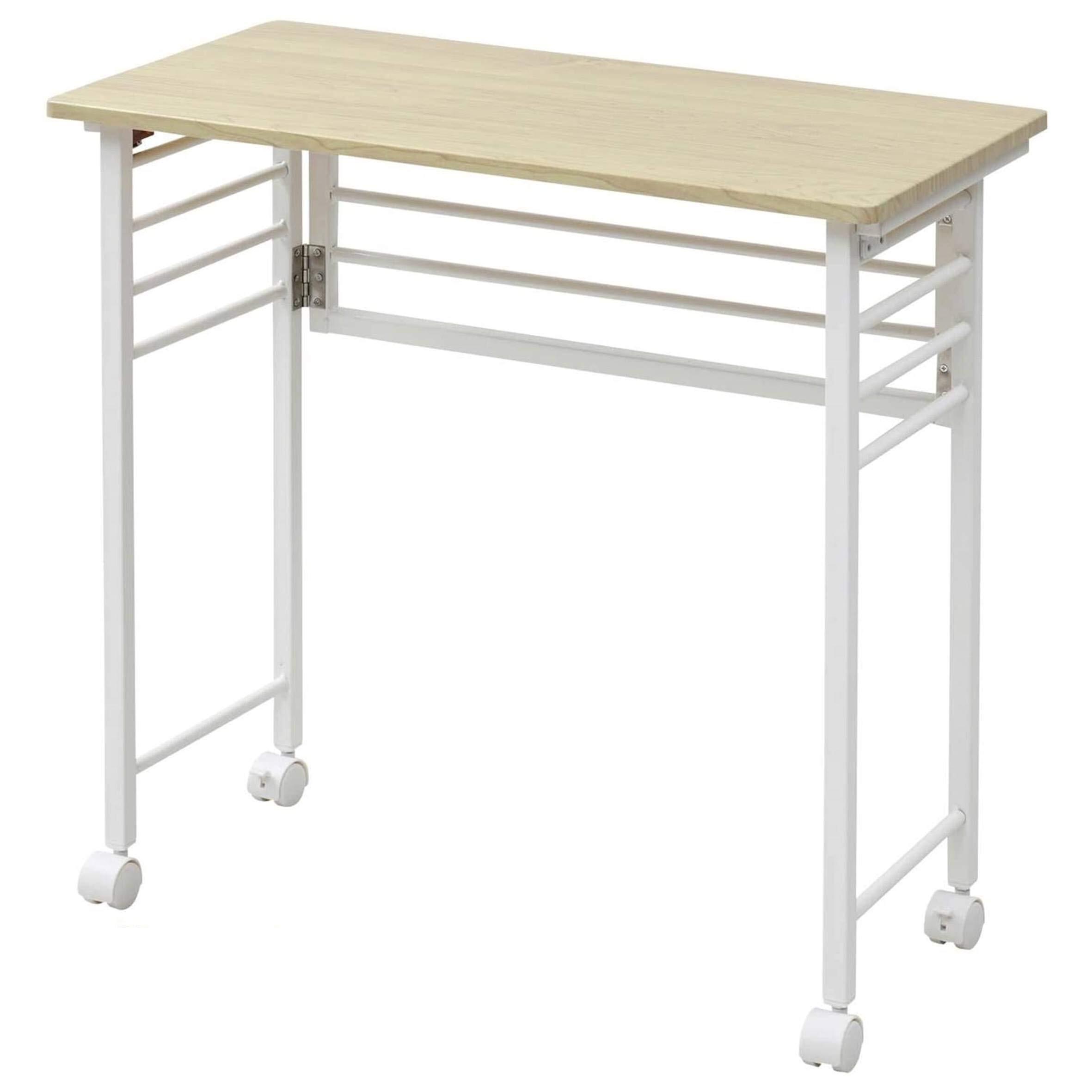 【数量限定】山善(YAMAZEN) 折りたたみ デスク (ミニ) 幅72×奥行36×高さ70cm コンパクト キャスター付き 傷がつきにくい 完成品 ナチュラルメイプル/アイボリー PSTC-7236(NM/IV 在宅勤務