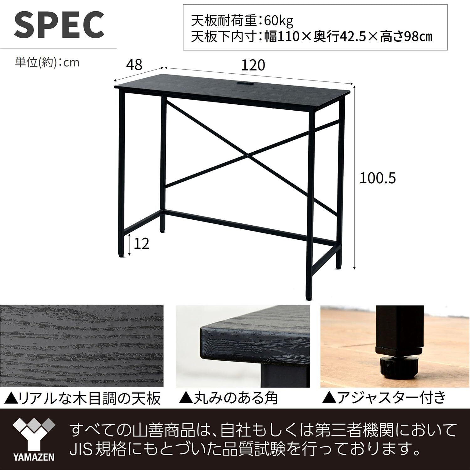 【特価セール】山善(YAMAZEN) デスク (スタンディングデスク) 耐荷重60kg 2口コンセント アジャスター付き 幅120×奥行48×高さ101cm PCデスク 組立品 ブラック FSD-1248E(BK) 在宅勤務