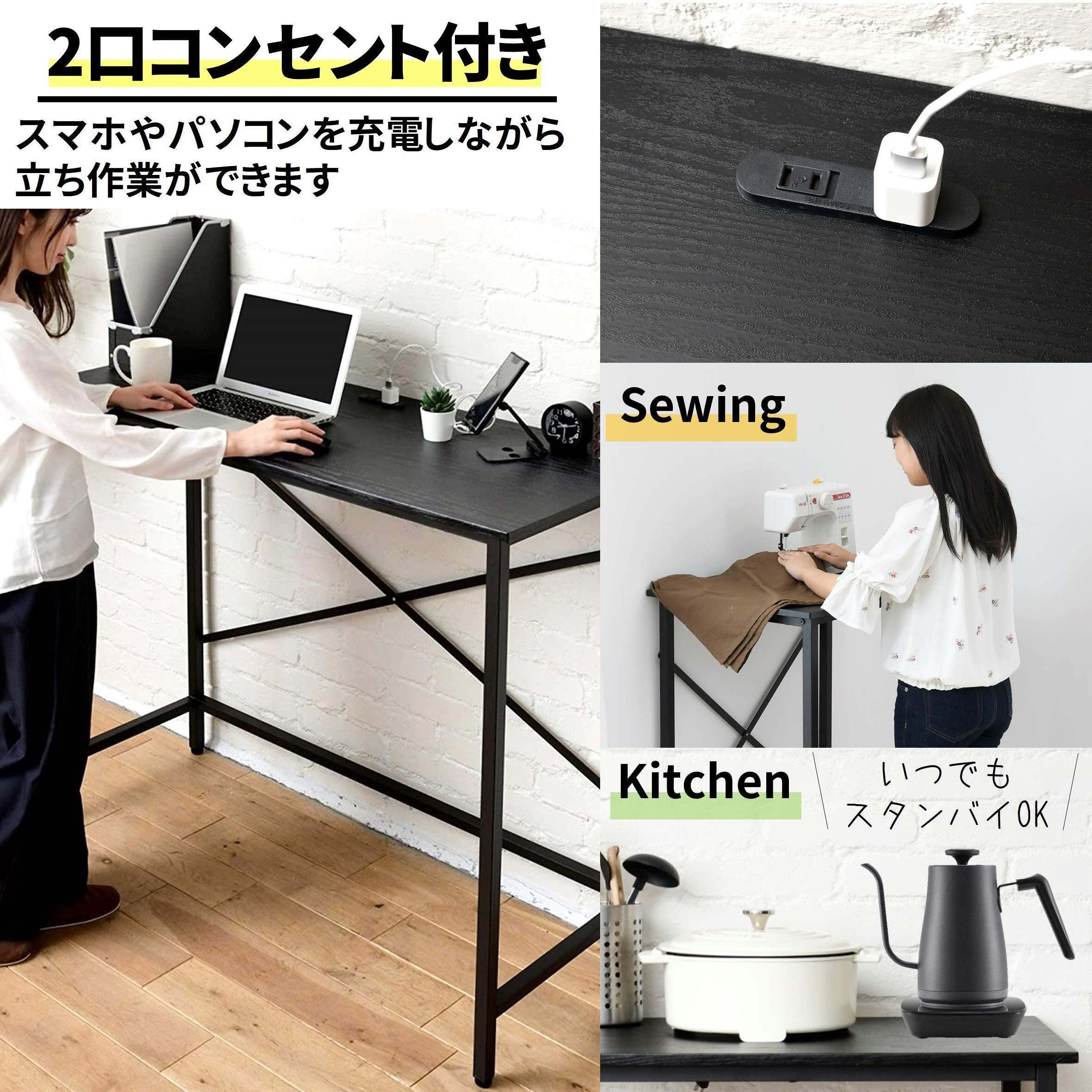 山善(YAMAZEN) デスク (スタンディングデスク) 耐荷重60kg 2口コンセント アジャスター付き 幅120×奥行48×高さ101cm PCデスク 組立品 ブラック FSD-1248E(BK) 在宅勤務