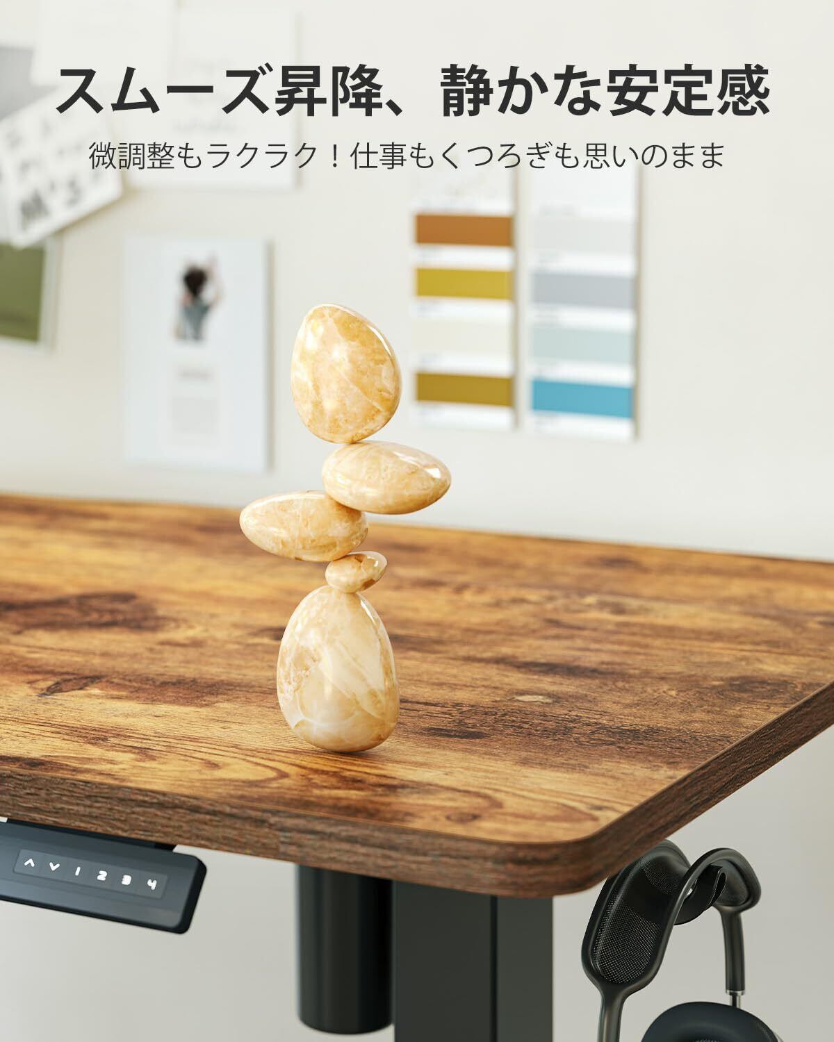 【安定感抜群!ゲーミング対応・静音・スムーズな昇降性能】FEZIBO昇降式ゲーミングデスクは強化モーターと頑丈なフレーム構造により、2台のモニターや周辺機器を載せてもスムーズに昇降でき、激しいゲームプレイ中もぐらつかない安定性を実現。天板にはブラックカーボンファイバー素材を採用し、見た目もクールで振動を抑える高性能仕様。プロ仕様のゲーミング環境に最適な1台です。また、モーター音は図書館並みの静かさ。深夜や早朝の作業でも周りを気にせず使用できます。スムーズな昇降で、デスク上の物がずれる心配もありません。