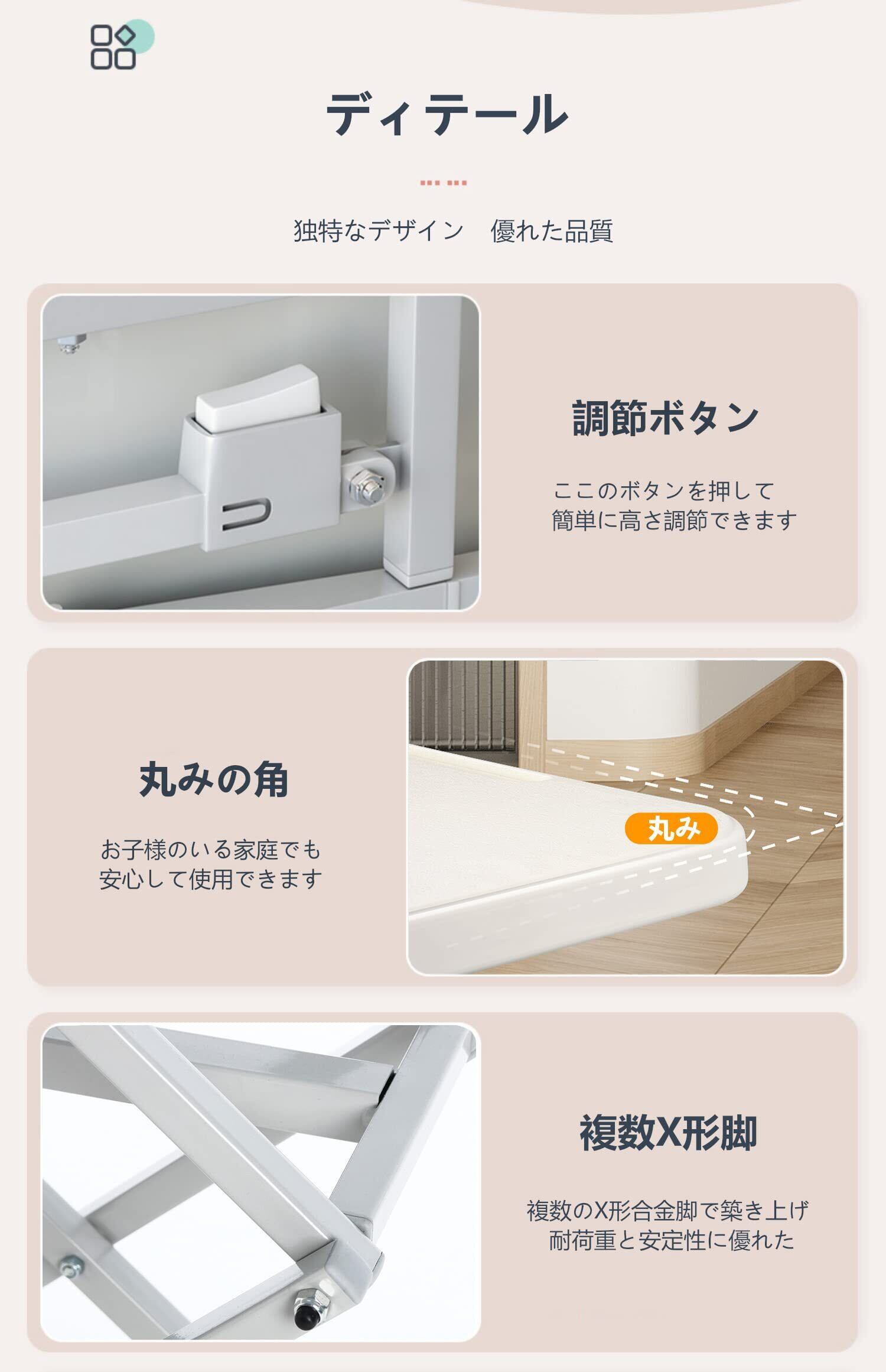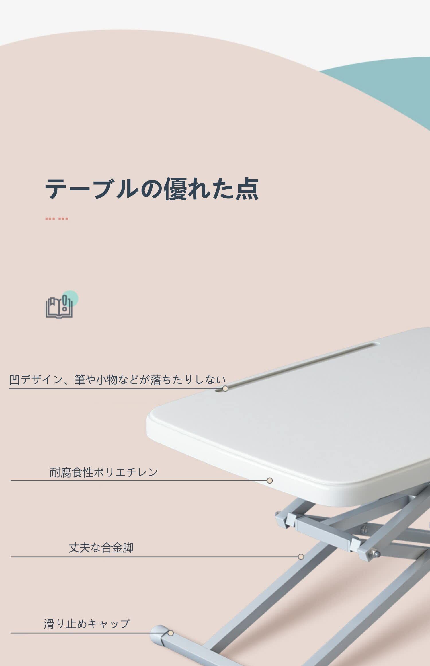 ✿【折りたたみ可、高さ調節】デスクを34、48、59、68cmの四つの高さに調節できます。お好みの高さで使用できます。折りたたんだら厚さはわずか7.5cm。使わない時は省スペースに収納できて場所を取りません。