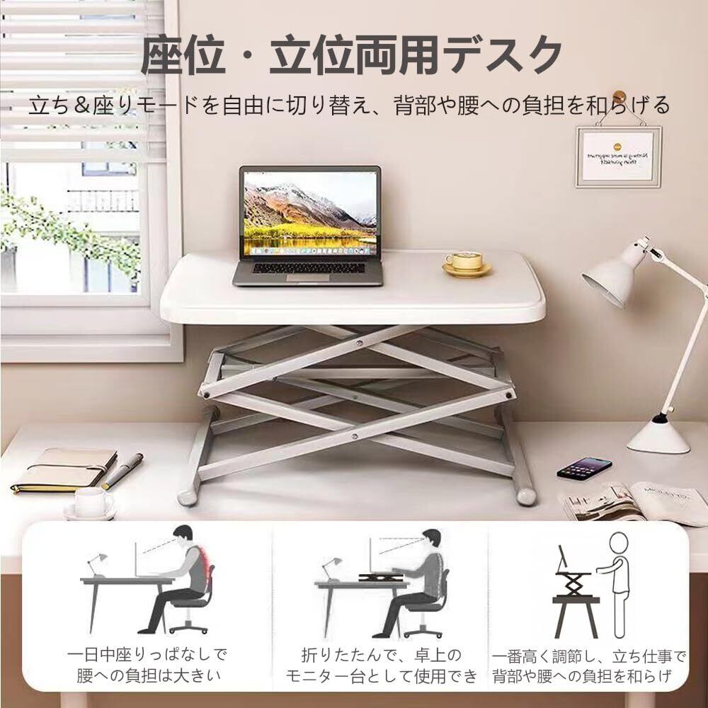 スタンディングデスク卓上 オフィスワークテーブル 机上 組み立て不要 昇降式 座位・立位両用 折りたたみ 持ち運び便利 灰色 耐荷重50kg 高さ調整34-68cm 天板サイズ幅64cm×奥行45cm