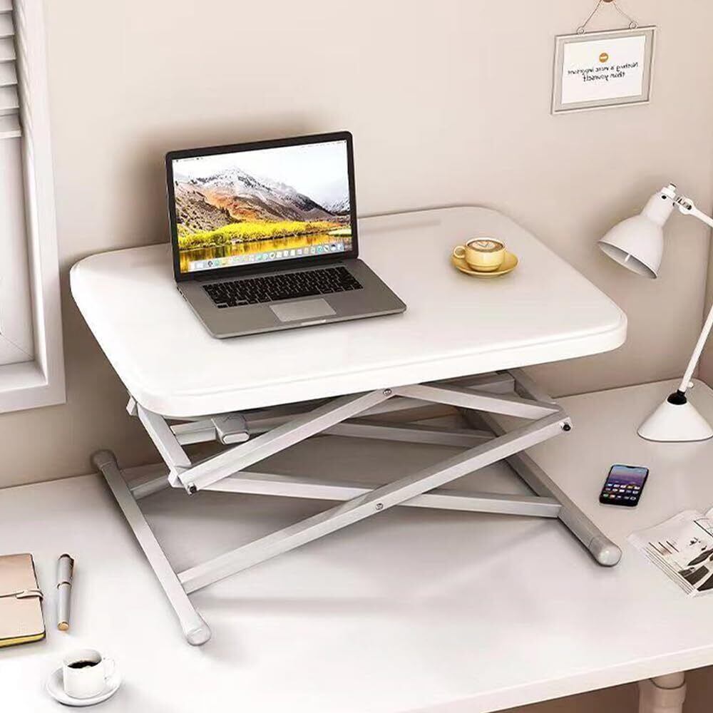 【特価セール】スタンディングデスク卓上 オフィスワークテーブル 机上 組み立て不要 昇降式 座位・立位両用 折りたたみ 持ち運び便利 灰色 耐荷重50kg 高さ調整34-68cm 天板サイズ幅64cm×奥行45cm