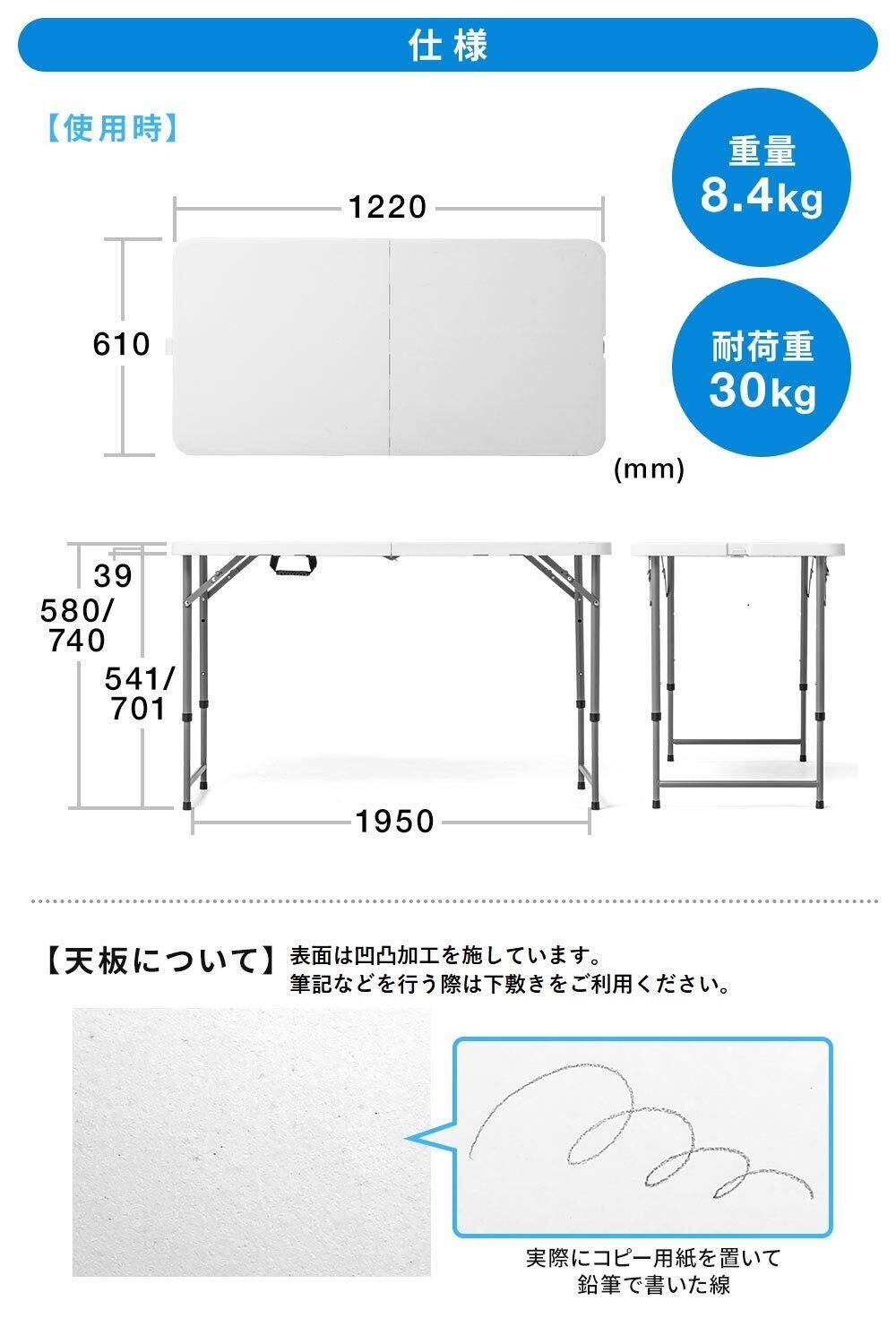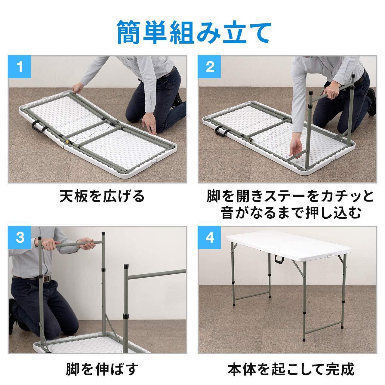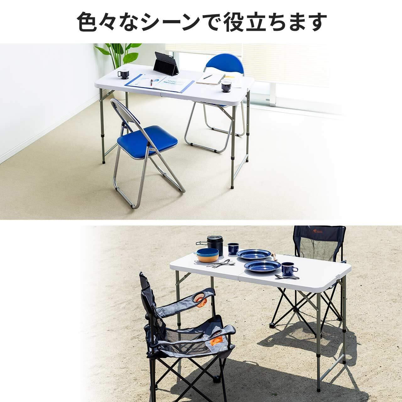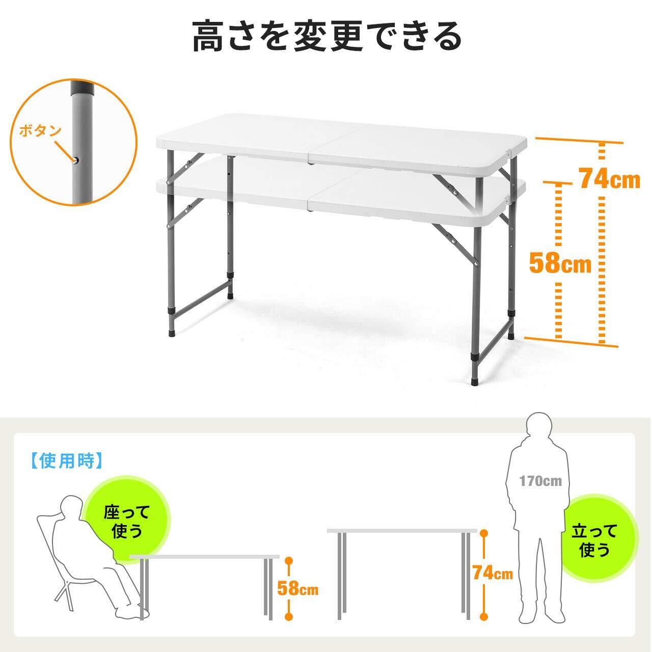 【数量限定】サンワダイレクト 折りたたみテーブル 幅122cm×奥行61cm 高さ58cm/74cm 耐荷重30kg 屋外 樹脂天板 ホワイト 100-FD015W