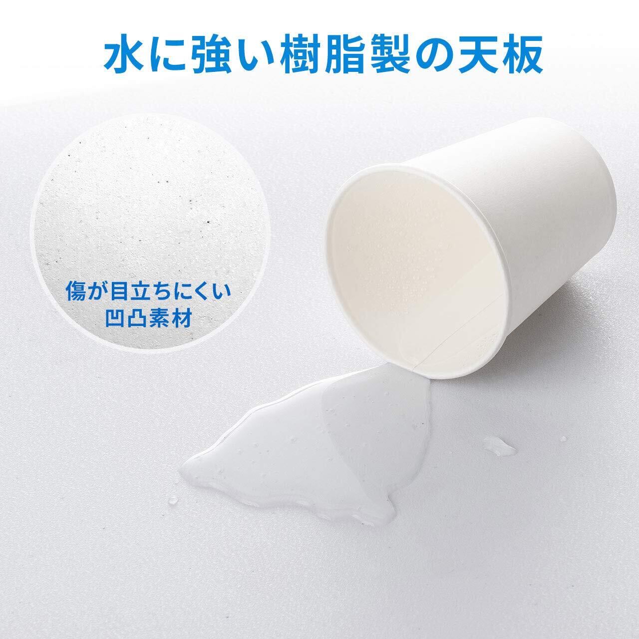 汚れても拭くだけで綺麗になる樹脂天板を採用しています。天板が閉じるのを防ぐロックと、折りたたみ時に天板が開かないようにするロック付きです。