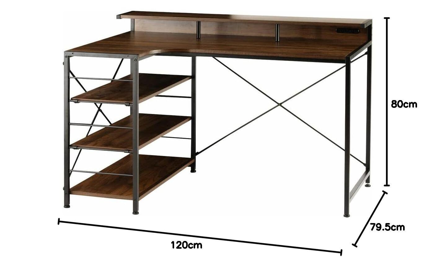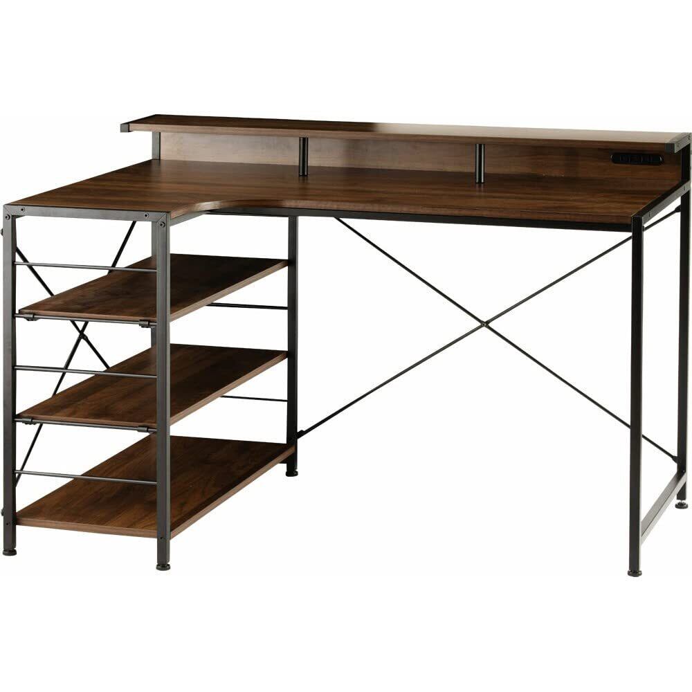 【在庫セール】アイリスプラザ 机 テーブル PCデスク ラック付き パソコン L字デスク LDK-1279 ブラウン