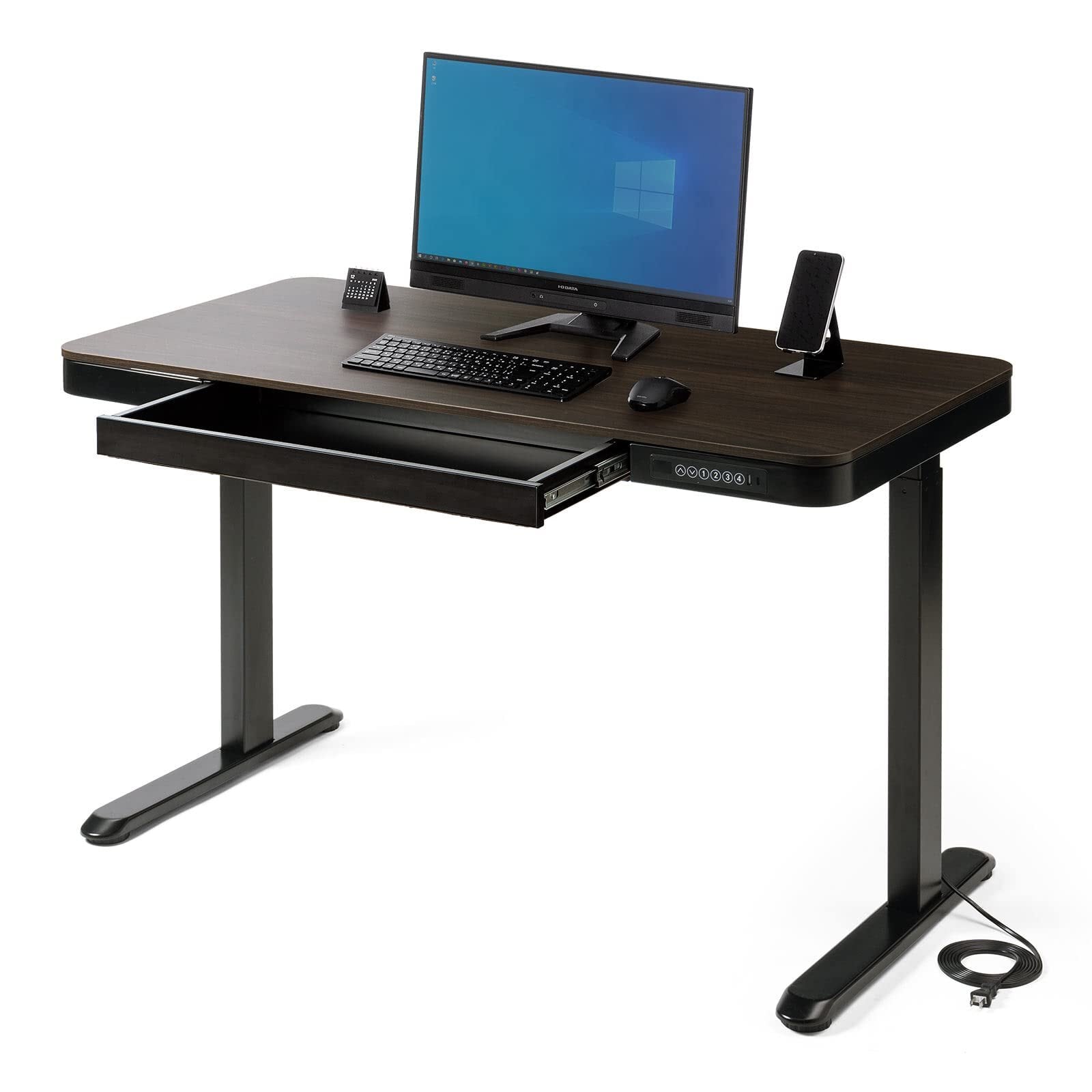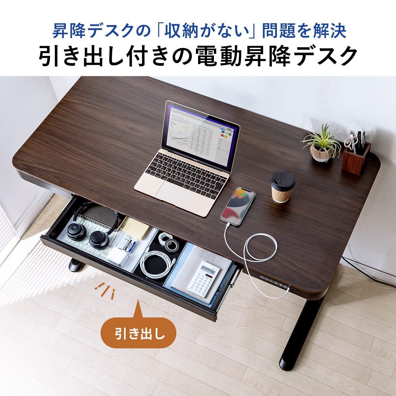 サンワダイレクト 昇降デスク 電動 幅120×奥行60cm USB 充電ポート付き 収納 引き出し付き 高さ72~112cm メモリー機能搭載 100-ERD039M
