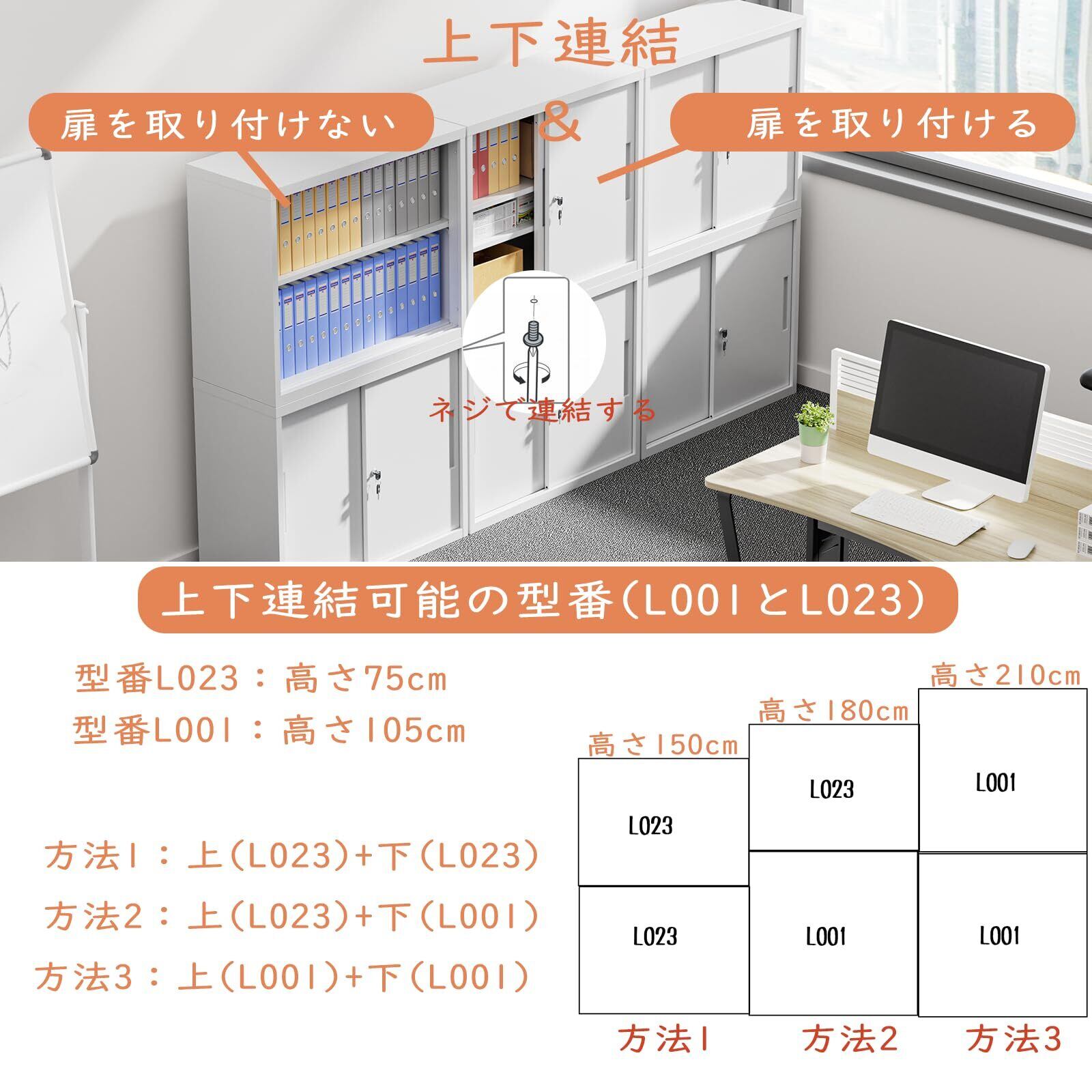 【特価商品】DEWEL ロッカー スチール書庫 幅900×奥行400×高さ1050mm 引き戸タイプ 鍵付き キャビネットスチールロッカー 3段 オフィス/事務所/更衣室/学校/業務用 A4対応 保管庫 収納 組み立て必要 日本語説明書付き 棚板可動 (ホワイト, 型番L001(引き戸高さ105cm))