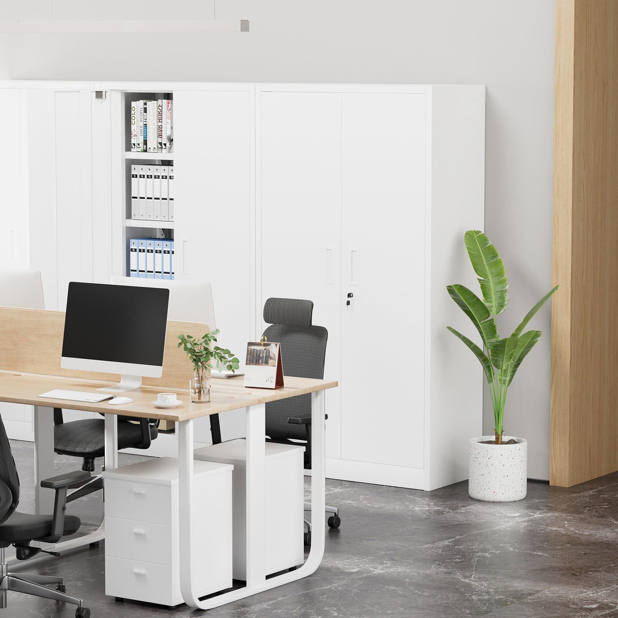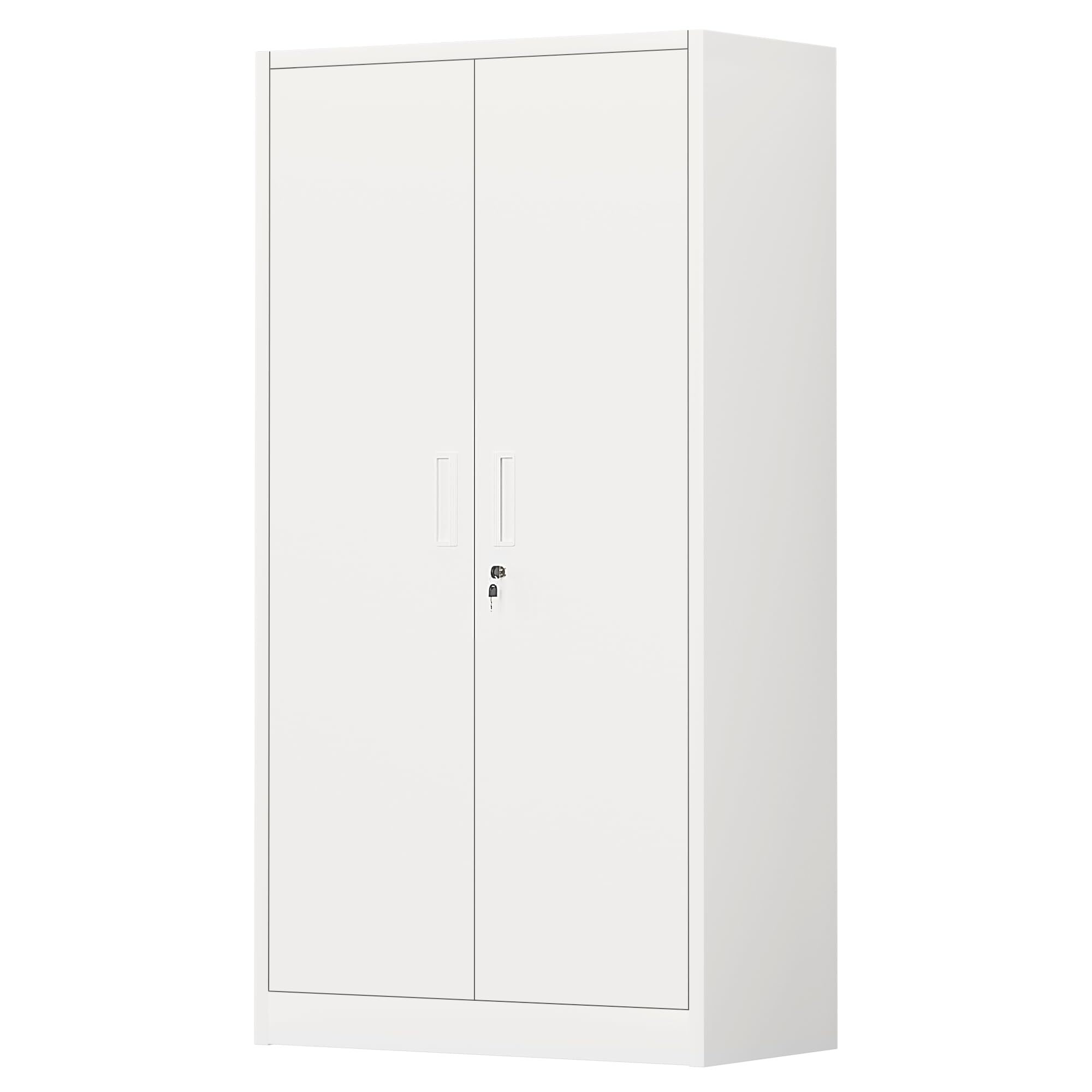 「両開きのスチールキャビネット」本製品は鋼で作られて、表面には防錆コーティングを施しており、錆びにくい。4枚の棚板は収納物に合わせて高さを調節できて、より使いやすく、収納スペースにムダがありません。付属したの錠と鍵は完璧に盗難を防ぎます。法人、個人事業主様に最適です。