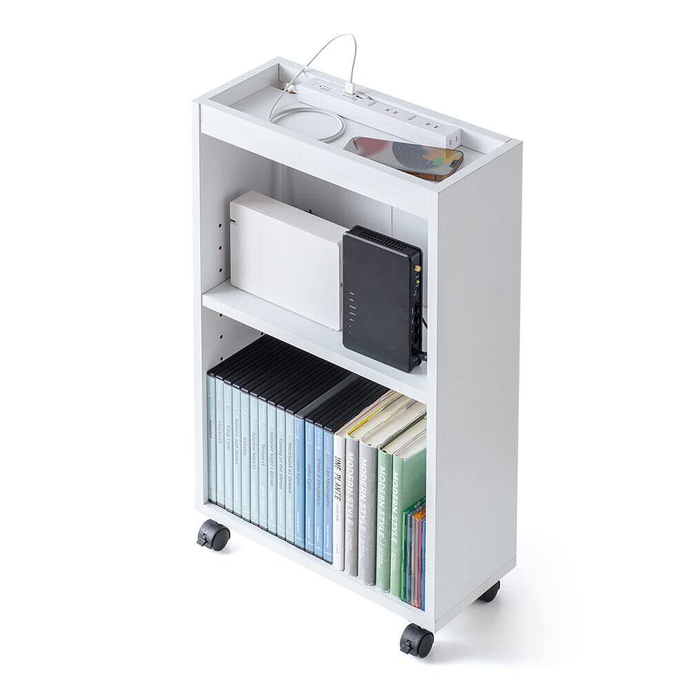 イーサプライ マルチラック 本棚 スリム キャスター付き 幅40×奥行17×高さ63cm(外寸) ベッド デスク下 ルーター 収納ボックス 配線 木製 ホワイト EEX-WG06WH