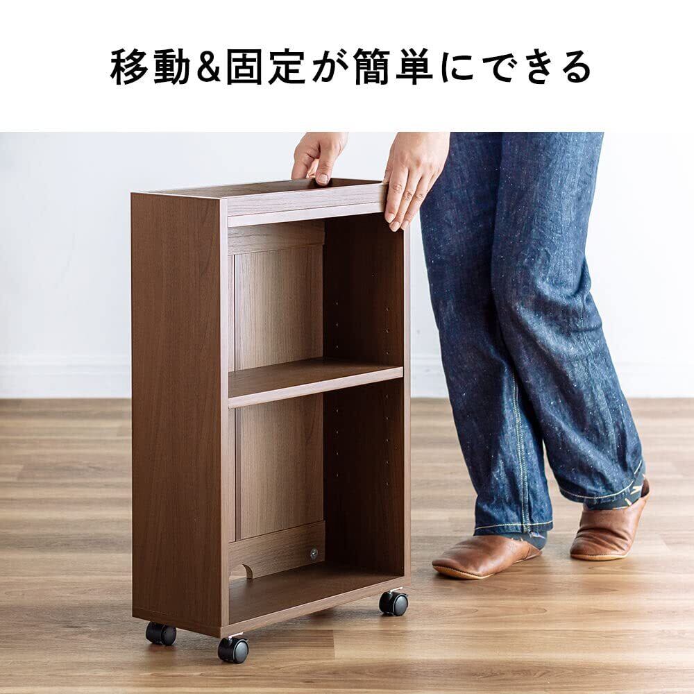 【2022最新】イーサプライ マルチラック 本棚 スリム キャスター付き 幅40×奥行17×高さ63cm(外寸) ベッド デスク下 ルーター 収納ボックス 配線 木製 ホワイト EEX-WG06WH