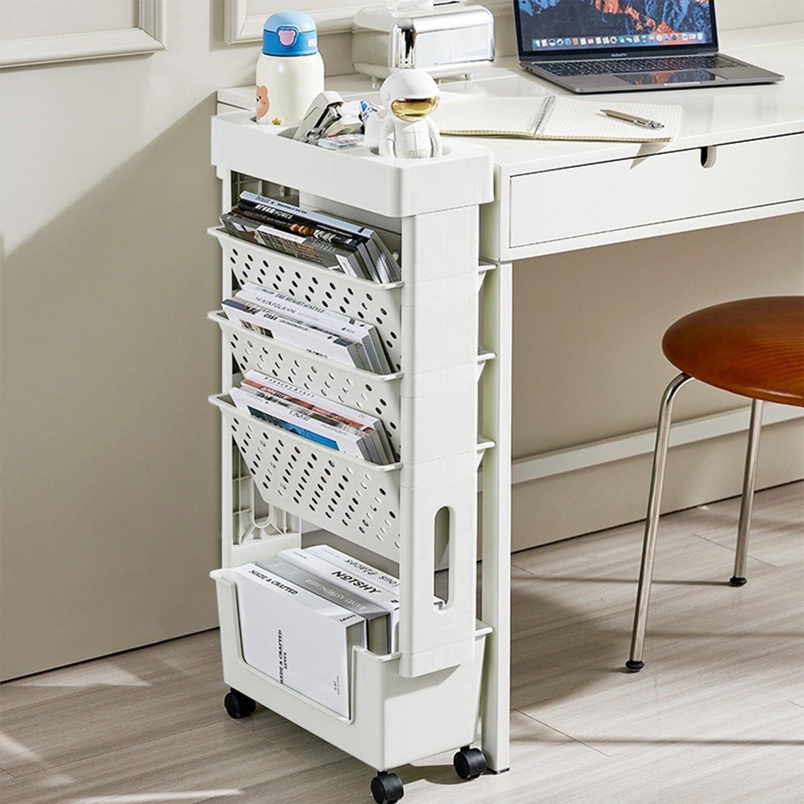 本棚 キャスター付き ファイルワゴン 教科書 収納 マガジンラック スリム 組立簡単 学生 ホワイト(幅37.5×奥行15×高さ78cm) (ホワイト)