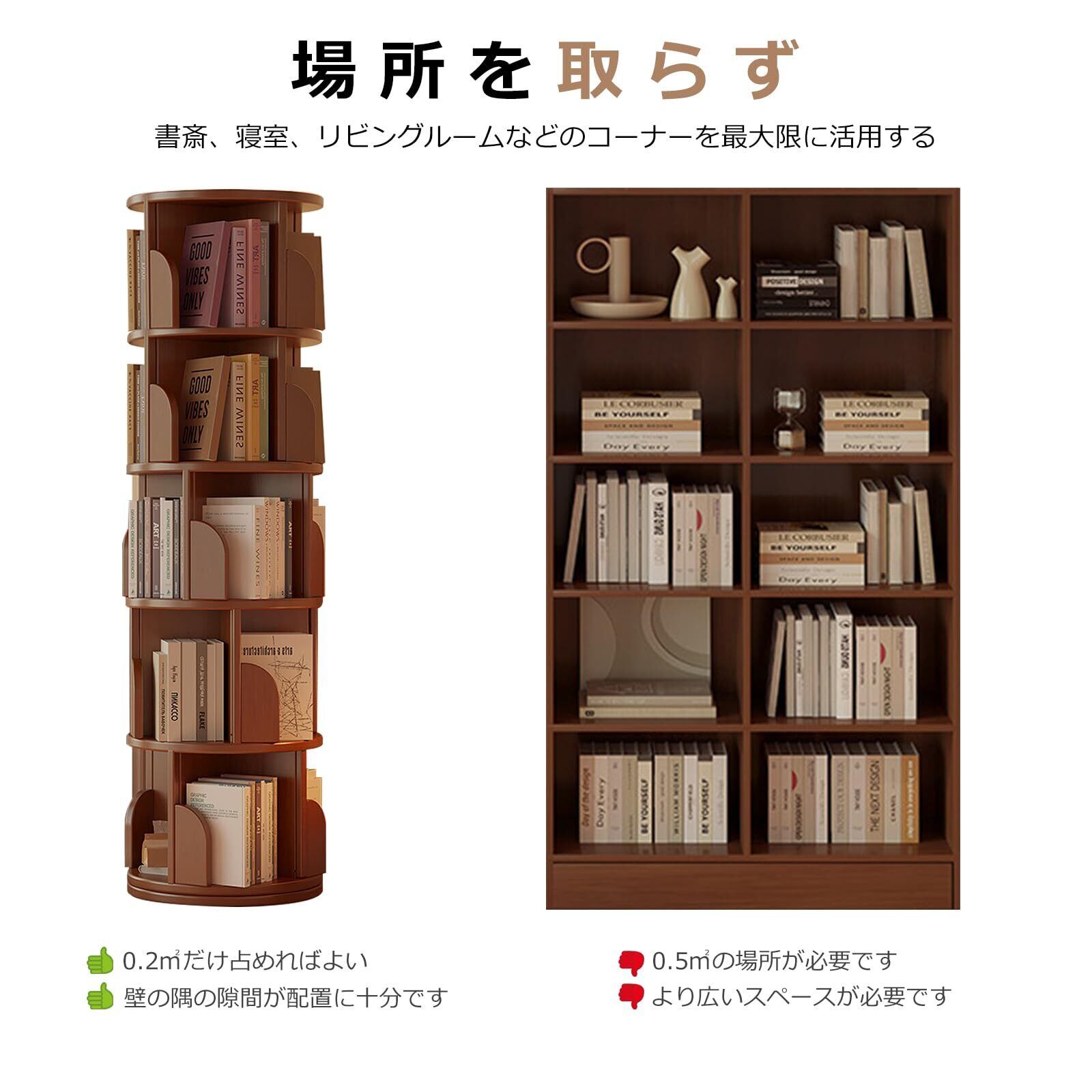【新着商品】本棚 収納 棚 ラック おしゃれ 回転式 スライド本棚 cdラック 漫画 大容量 オフィス リビング 子供部屋 幅50cm 高さ65cm(5段)