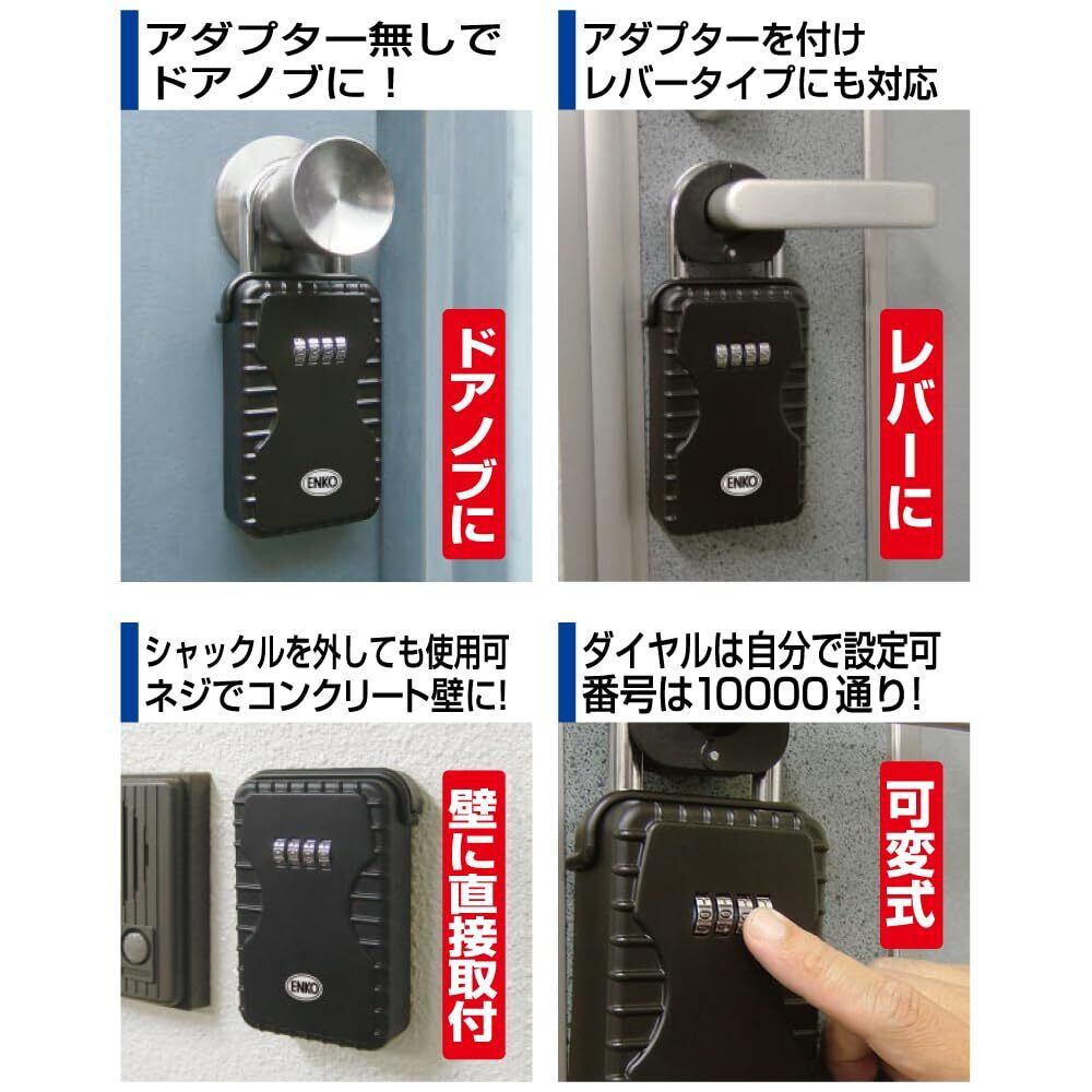 設置場所が「ドアノブ等に引っ掛けて」の取付と「壁にビス止め」との取付の2通りの方法を選べます。