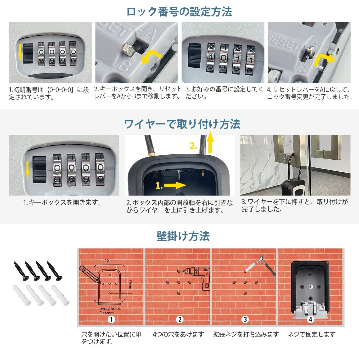 【ご注意】①ご使用の前、必ず取扱説明書をよく読んでください。②キーボックス初期番号が【0-0-0-0】に設定されております。ご使用の時、必ず暗証番号を設定してください。③受け取った製品に何か問題があったら、いつでも連絡してください、[Socpuro]はあなたの問題を解決するために最善を尽くします。