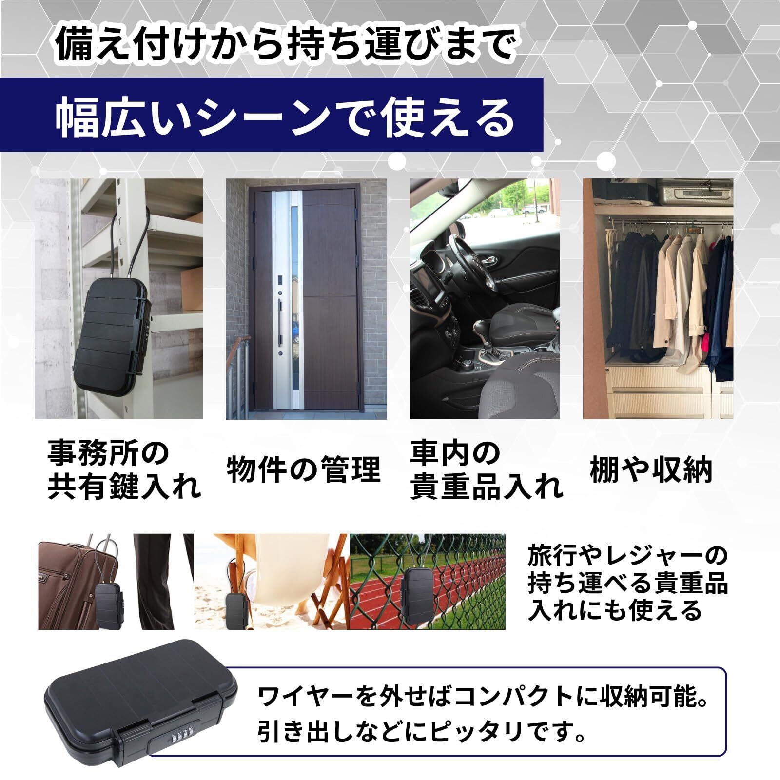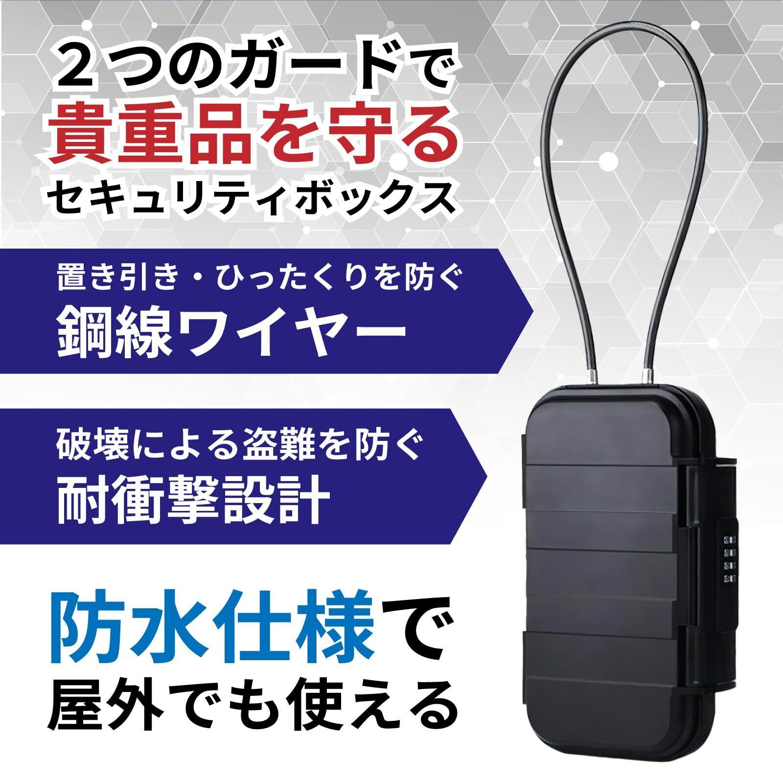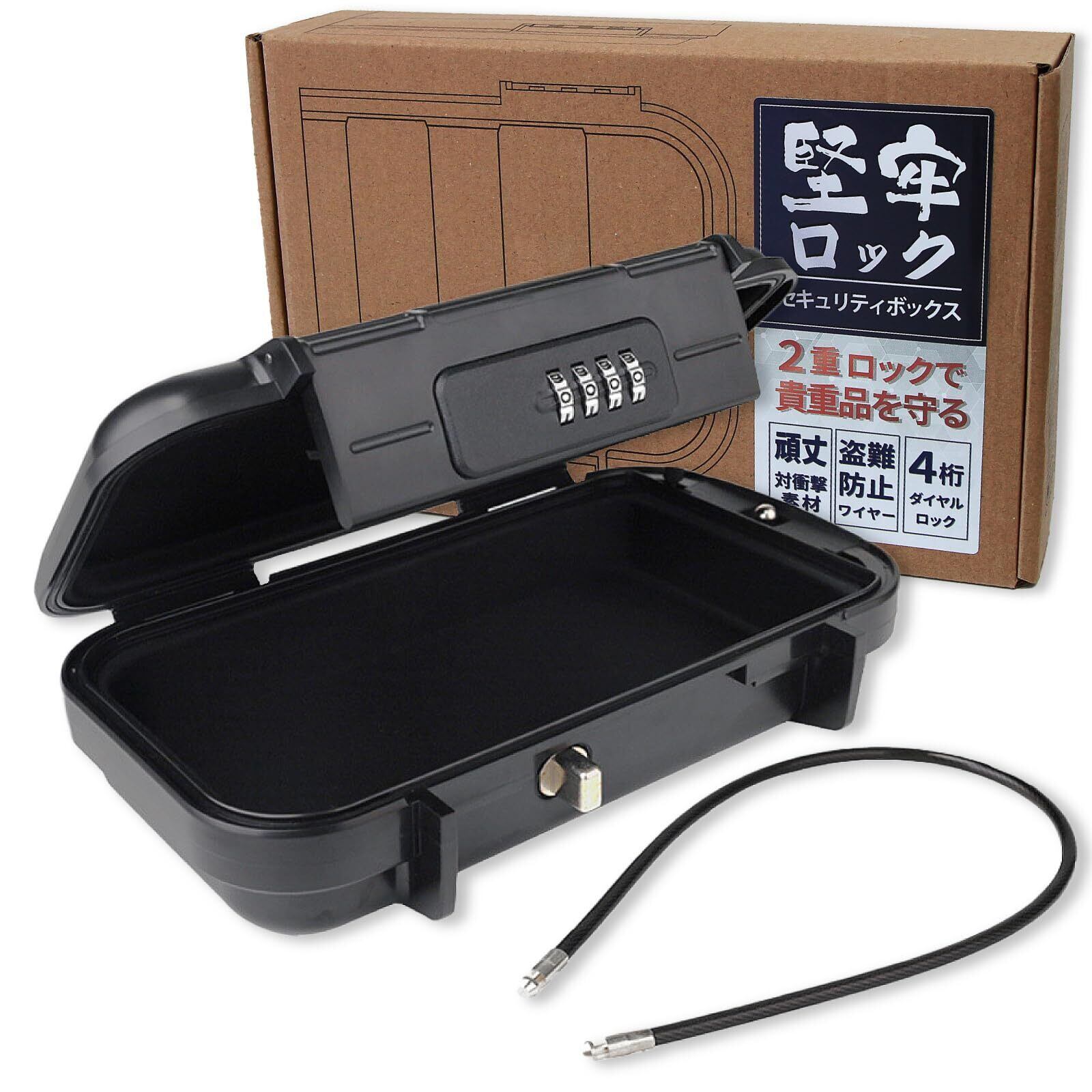 堅牢ロック セキュリティーボックス ポータブルセーフ 二重ロック コンパクト設計 耐衝撃 防水 軽量 旅行 アウトドア 車載 鍵不要 貴重品入れ 貴重品保管 小型金庫 防犯ボックス