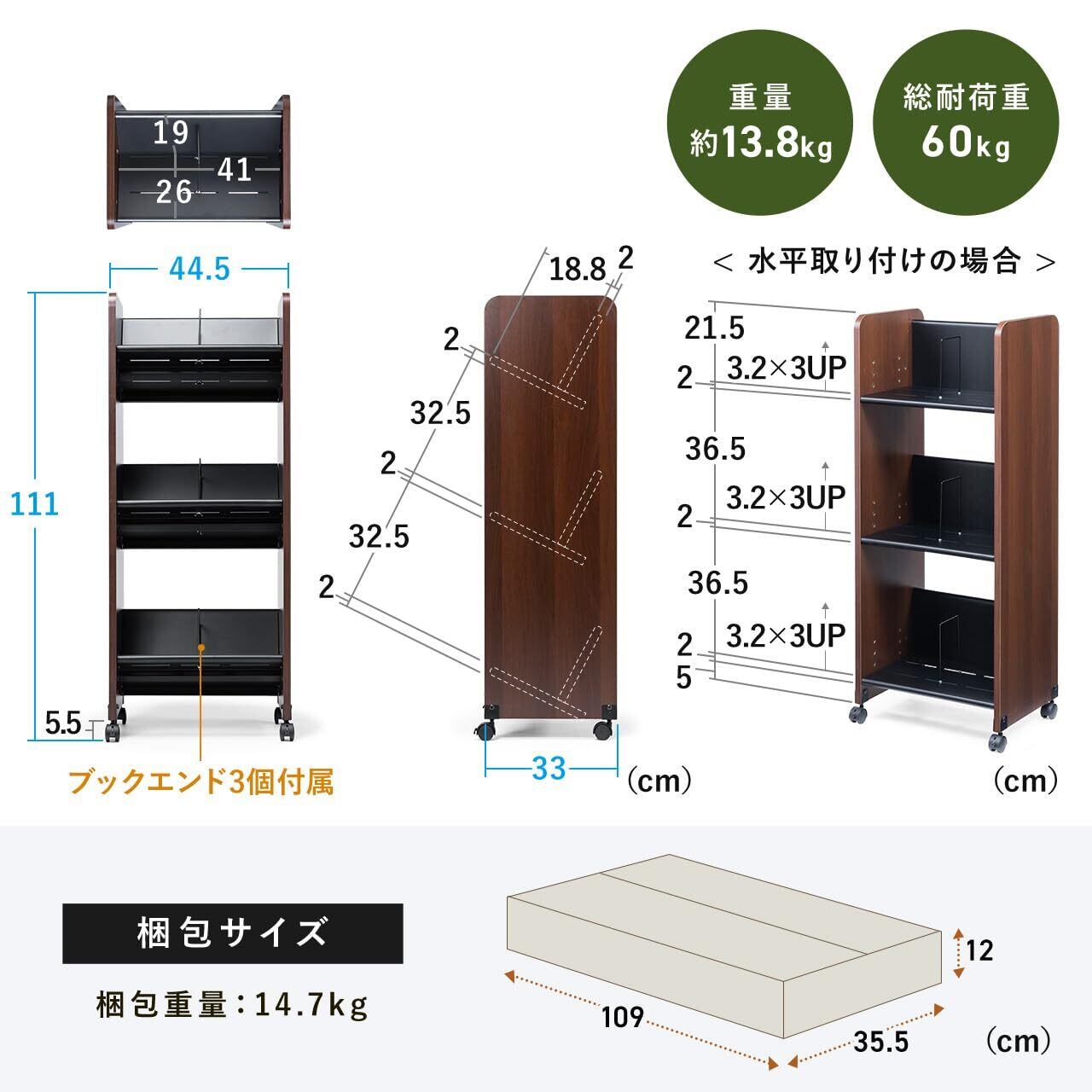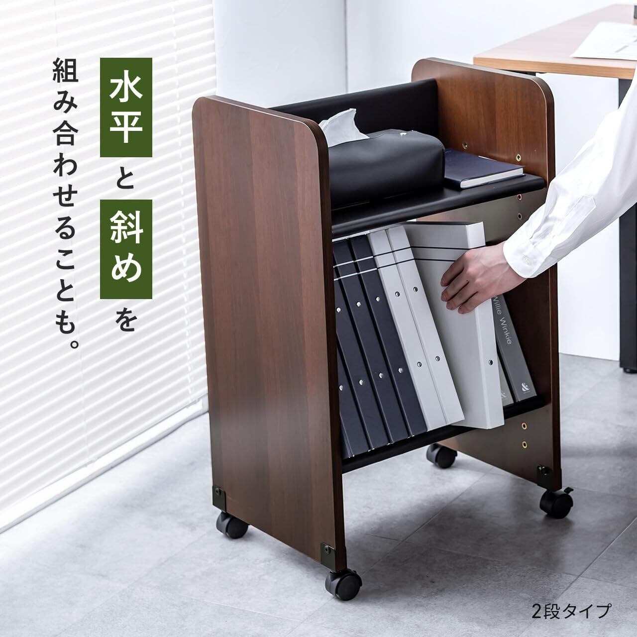 【数量限定】サンワダイレクト ファイルワゴン キャスター付き 3段 A4ファイル対応 幅44.5×奥行33×高さ111cm 総耐荷重60kg ファイルラック 斜め 100-WG021M