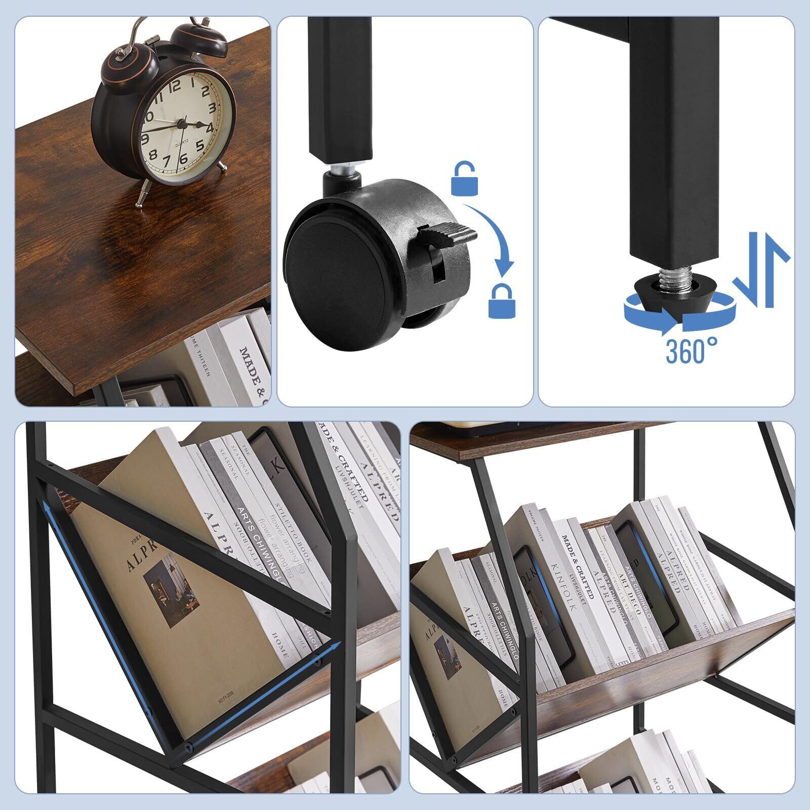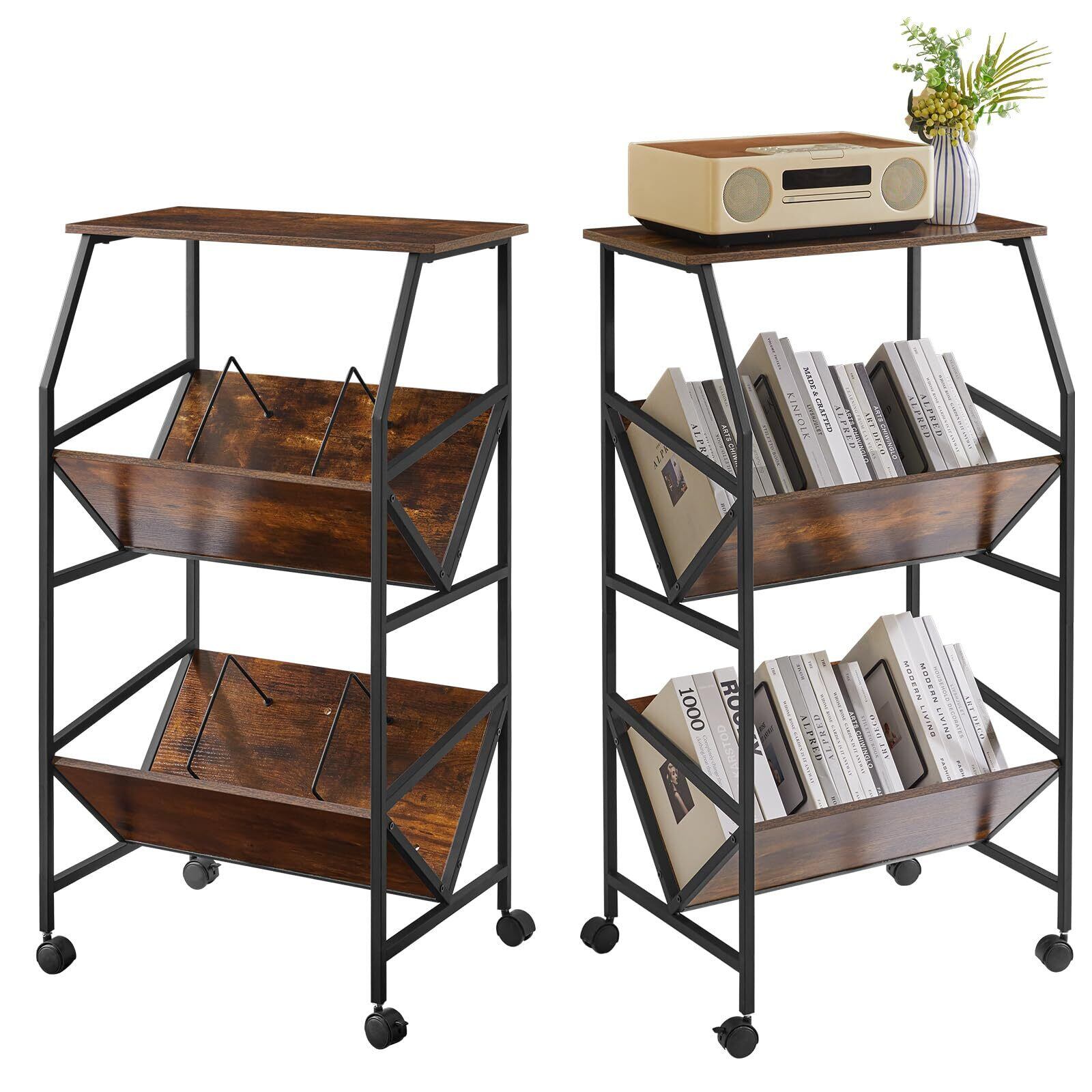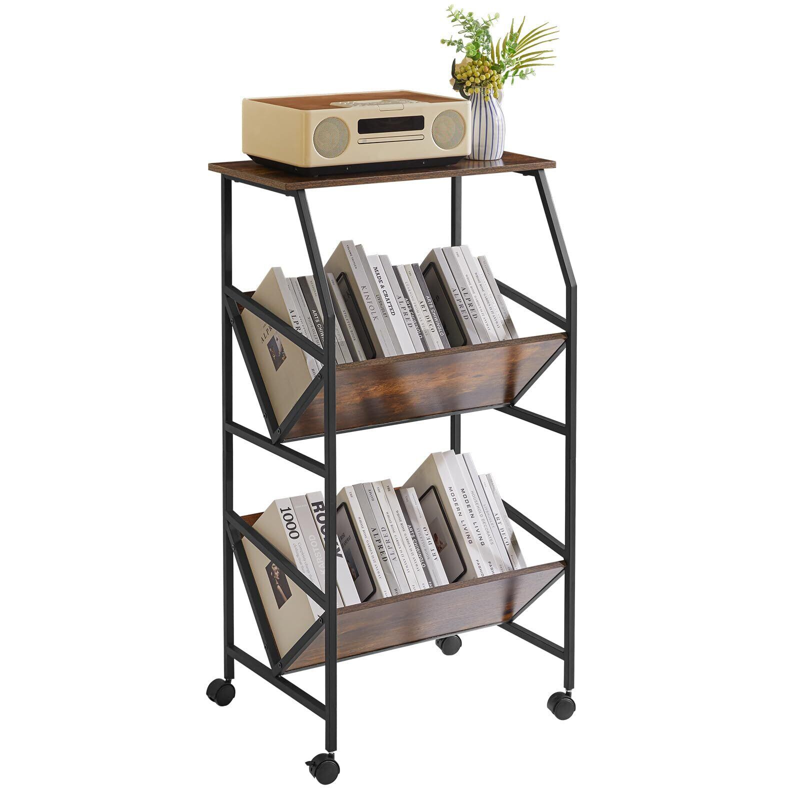IBUYKE ファイルワゴン ファイルラック ファイル棚 仕切り付き ファイル収納 書類棚 斜め A4収納 キャスター付き 天板付き 棚 ワゴン 幅56×奥行29.5×高さ101cm ブラウン JPTMJ028H