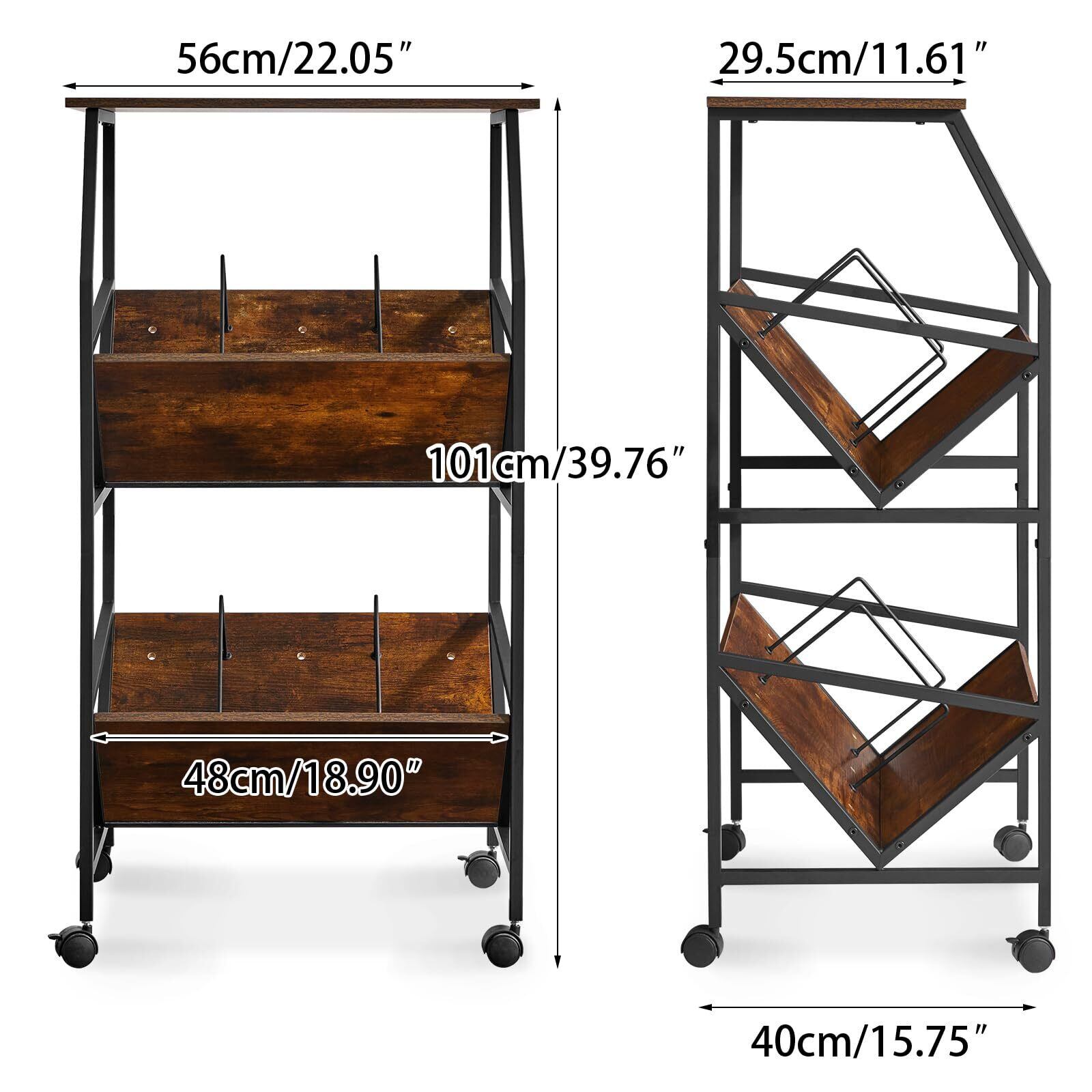 【特価セール】IBUYKE ファイルワゴン ファイルラック ファイル棚 仕切り付き ファイル収納 書類棚 斜め A4収納 キャスター付き 天板付き 棚 ワゴン 幅56×奥行29.5×高さ101cm ブラウン JPTMJ028H
