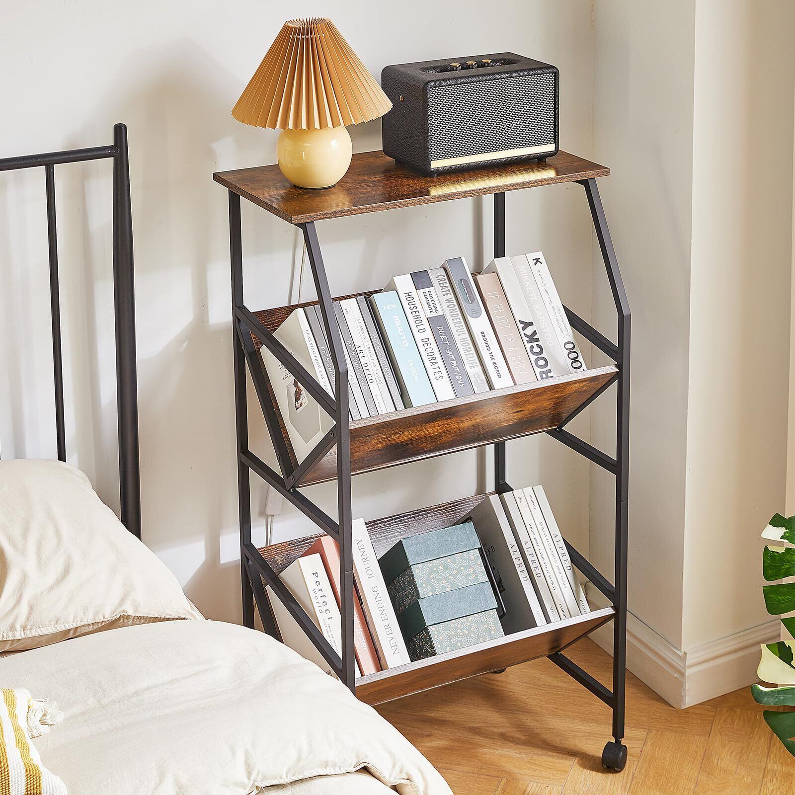 【天板付ファイルラック】ホコリを防ぐ上置き棚が付いています。 強力な耐荷重能力、重い物の持ち運びに適しています。 上部にはプリンター、電話、装飾品などを収納できます。