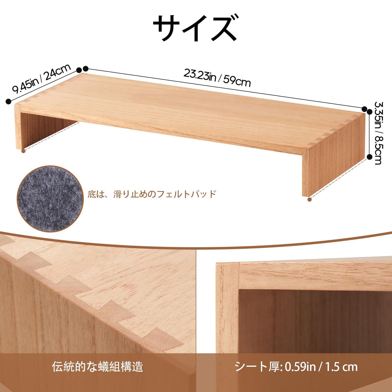 KIRIGEN 総桐 机上ラック pc台 机上 卓上 棚 デスク 上置棚 幅590㎜ 収納 机上台 木製 完成品 モニター台 パソコンラック 机上 ナチュラル TQ-PMJ59-NA