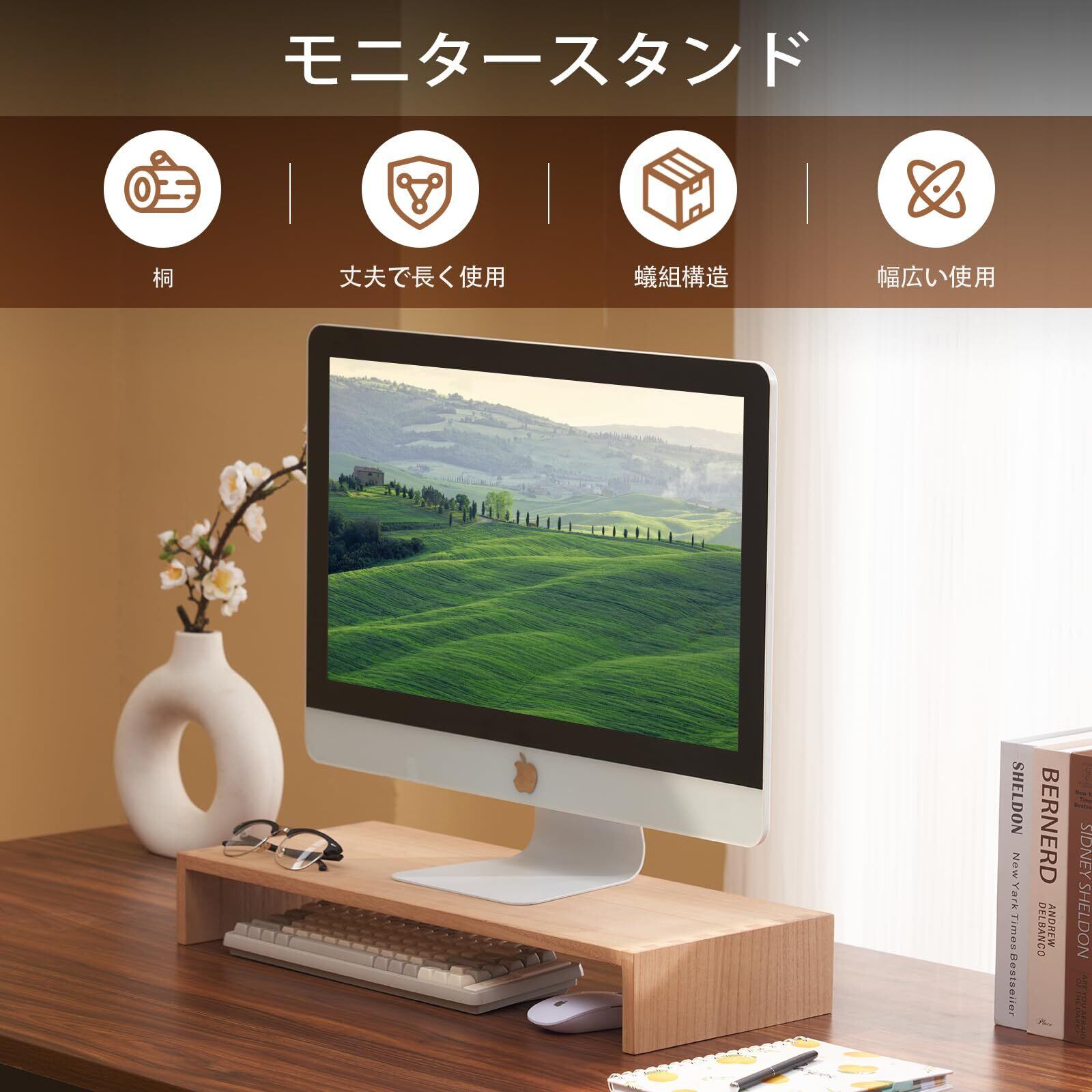 【新春セール】KIRIGEN 総桐 机上ラック pc台 机上 卓上 棚 デスク 上置棚 幅590㎜ 収納 机上台 木製 完成品 モニター台 パソコンラック 机上 ナチュラル TQ-PMJ59-NA