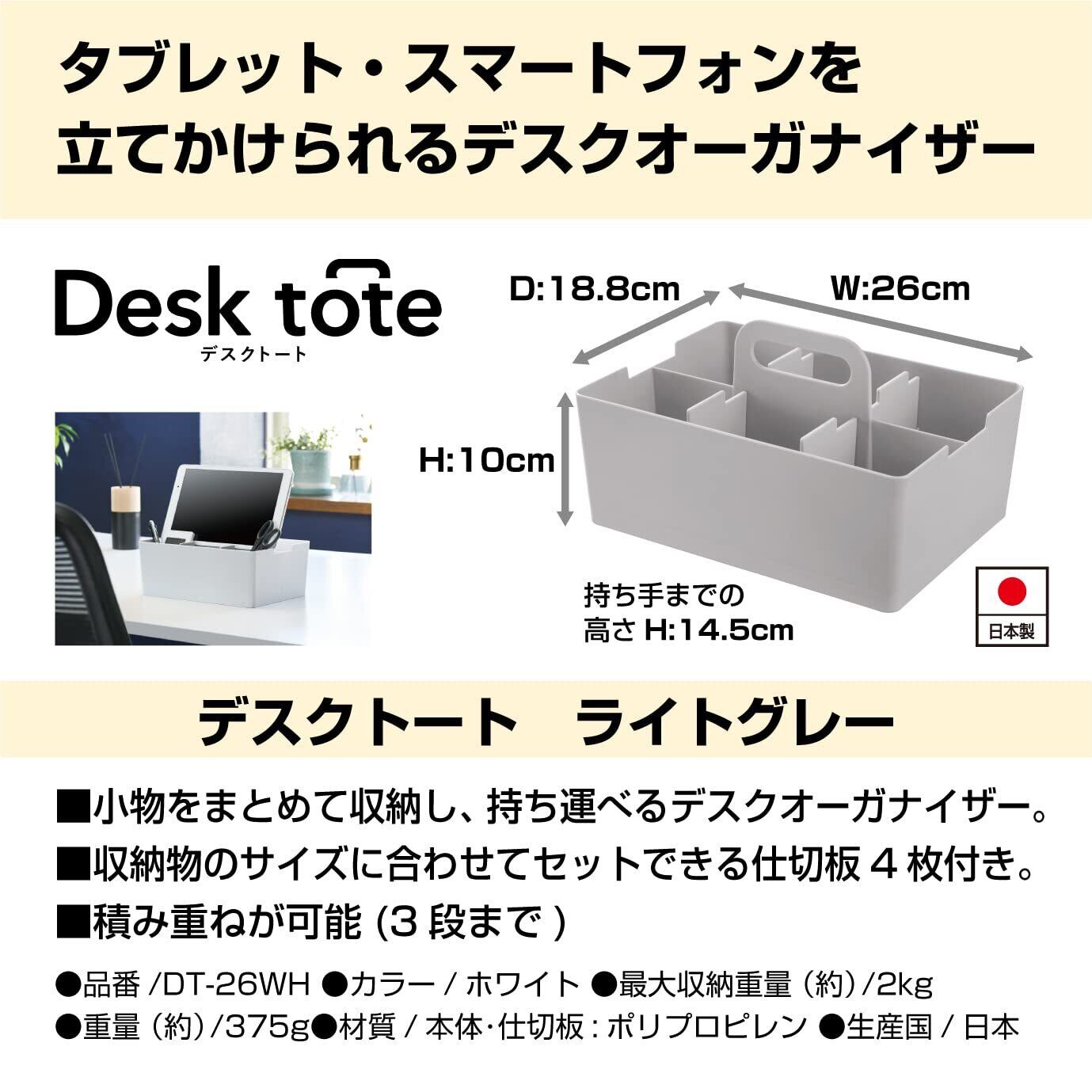 JEJアステージ(JEJ Astage) 収納ボックス デスクトート デスクオーガナイザー 積み重ね 日本製 ライトグレー 幅26×奥行18.8×高さ14.5cm